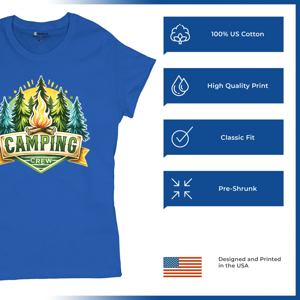 Camping Crew is made for trail lovers, glamping fans, and outdoorsmen who thrive in nature. Celebrate camping adventures, campfire moments, and wilderness vibes with this fun, cozy design. Perfect for family trips, forest escapes, and national park exploration in any season.
