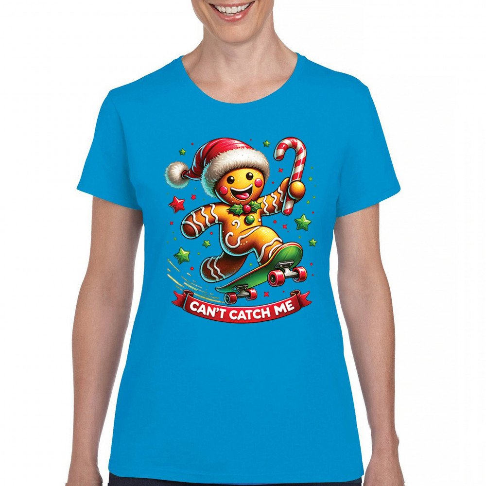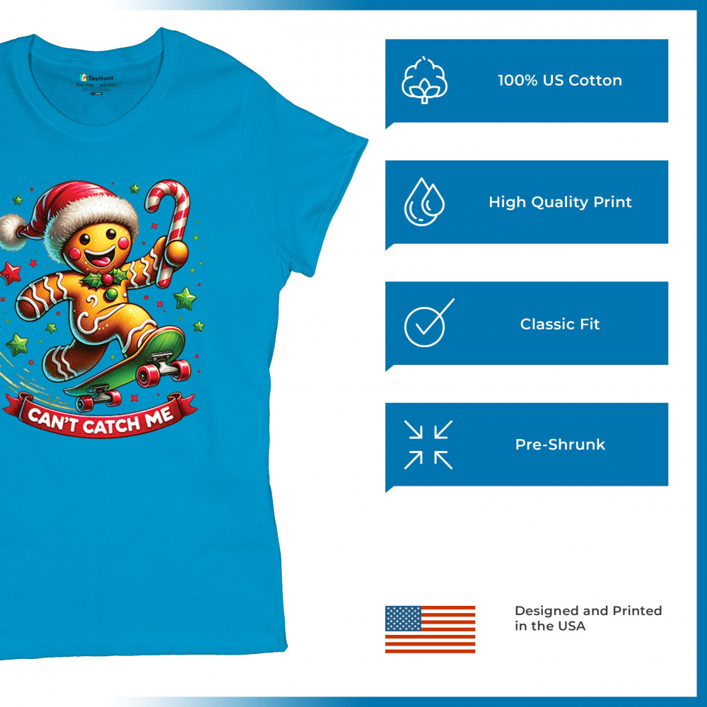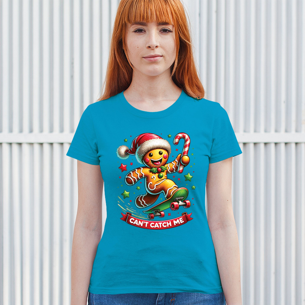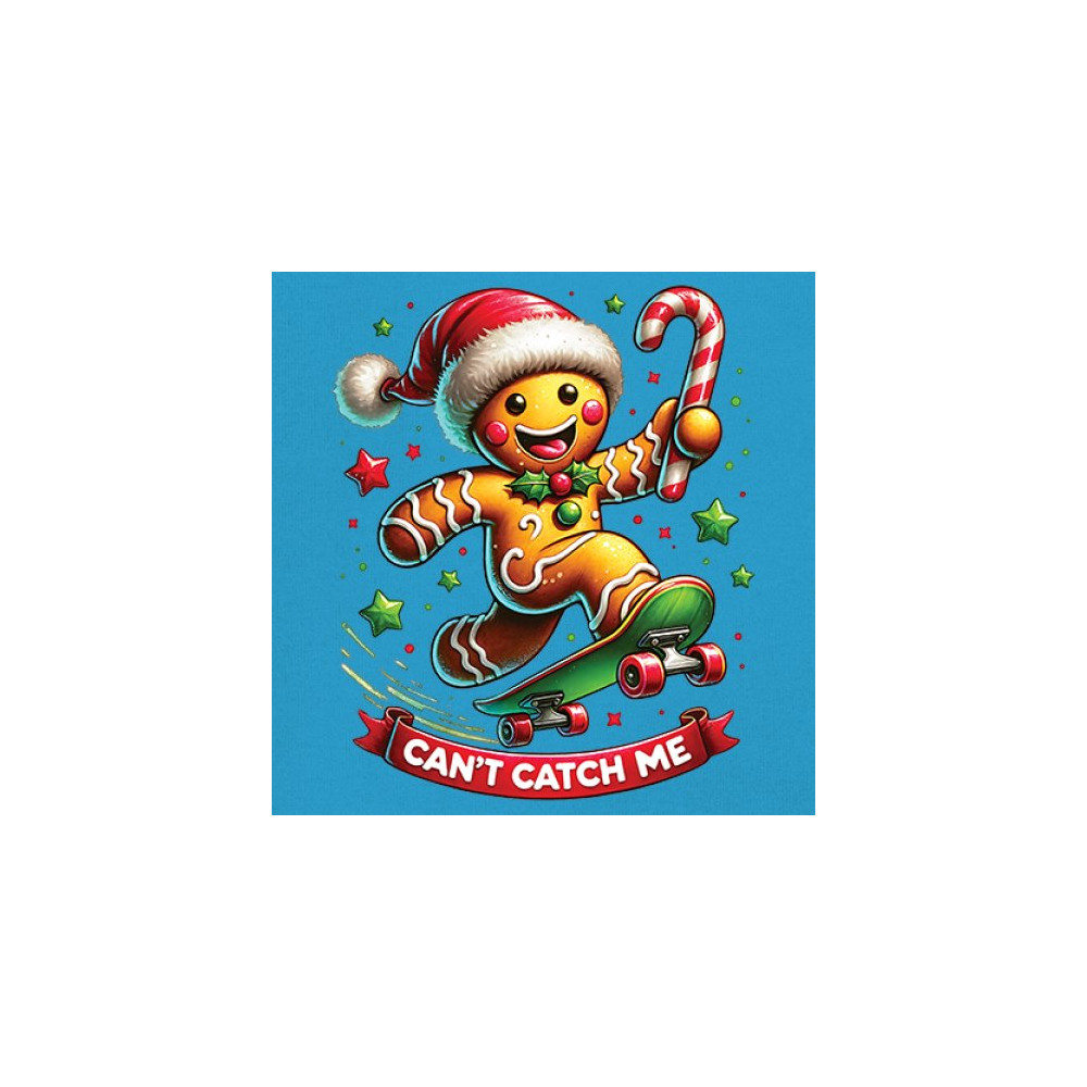 A fun Christmas design featuring a gingerbread character on a skateboard, candy cane in hand, and bright festive colors. Perfect for holiday party outfits, family gatherings, Christmas photos, festive humor fans, stocking stuffer gifting, winter celebrations, and anyone who loves playful seasonal graphics with cheerful personality.