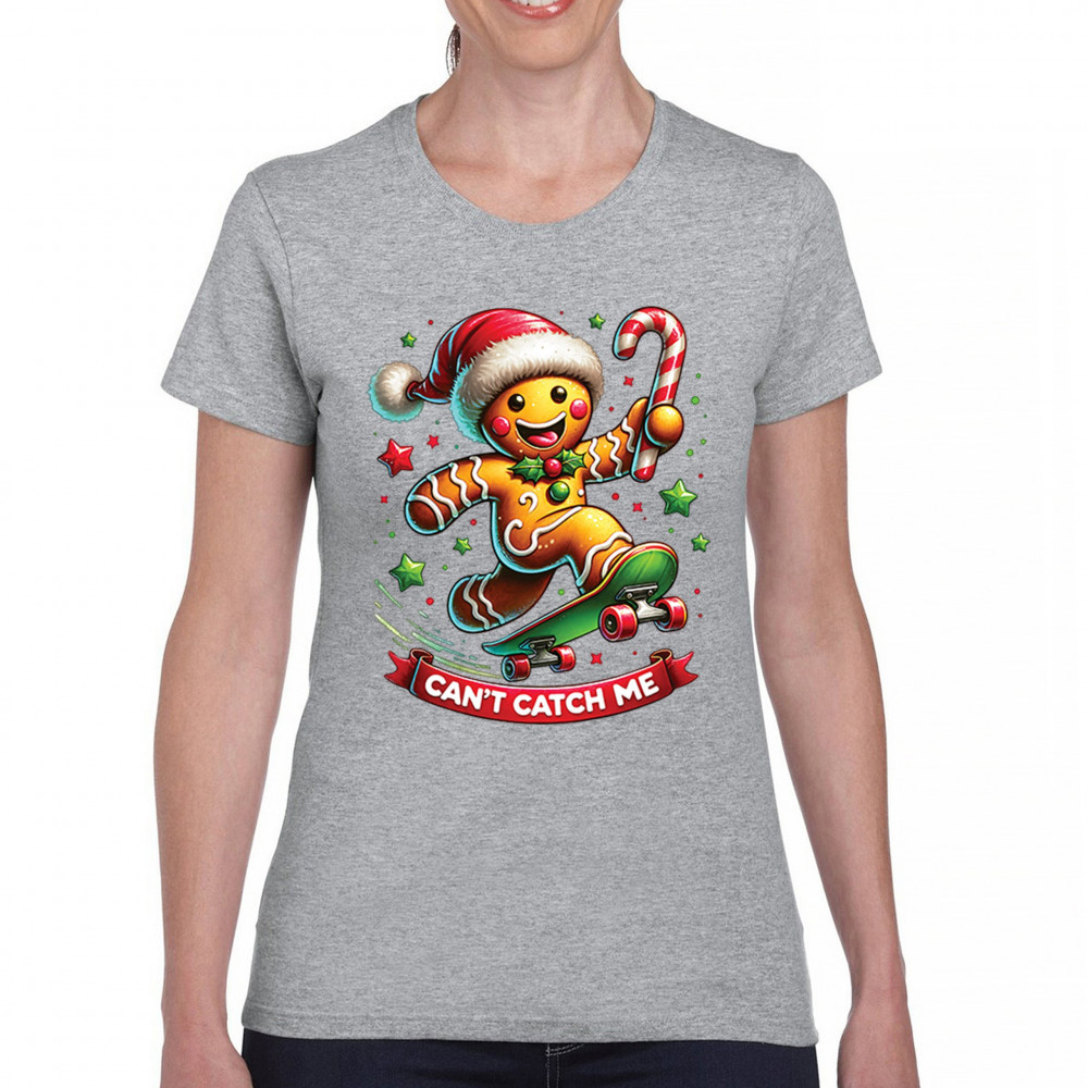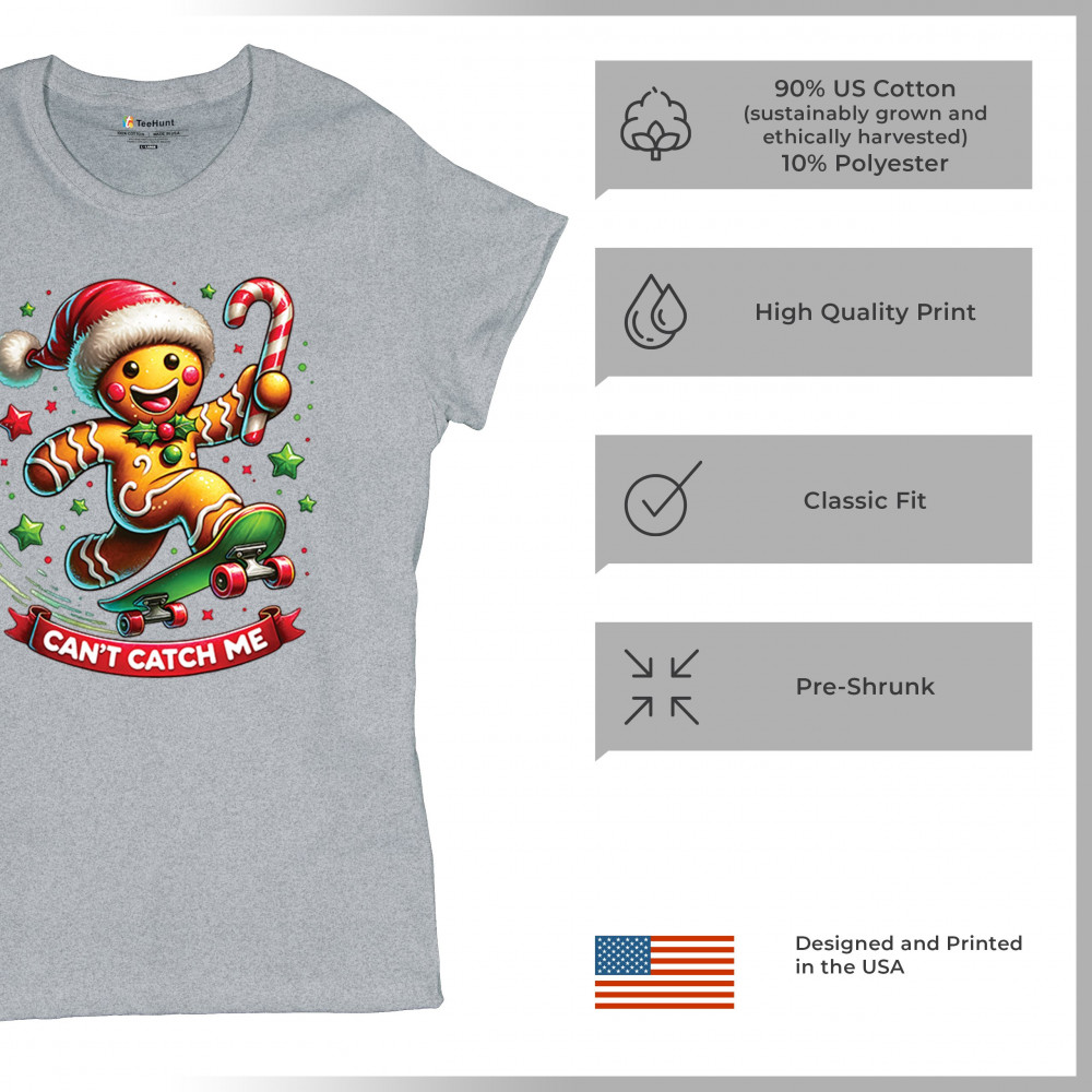 A fun Christmas design featuring a gingerbread character on a skateboard, candy cane in hand, and bright festive colors. Perfect for holiday party outfits, family gatherings, Christmas photos, festive humor fans, stocking stuffer gifting, winter celebrations, and anyone who loves playful seasonal graphics with cheerful personality.