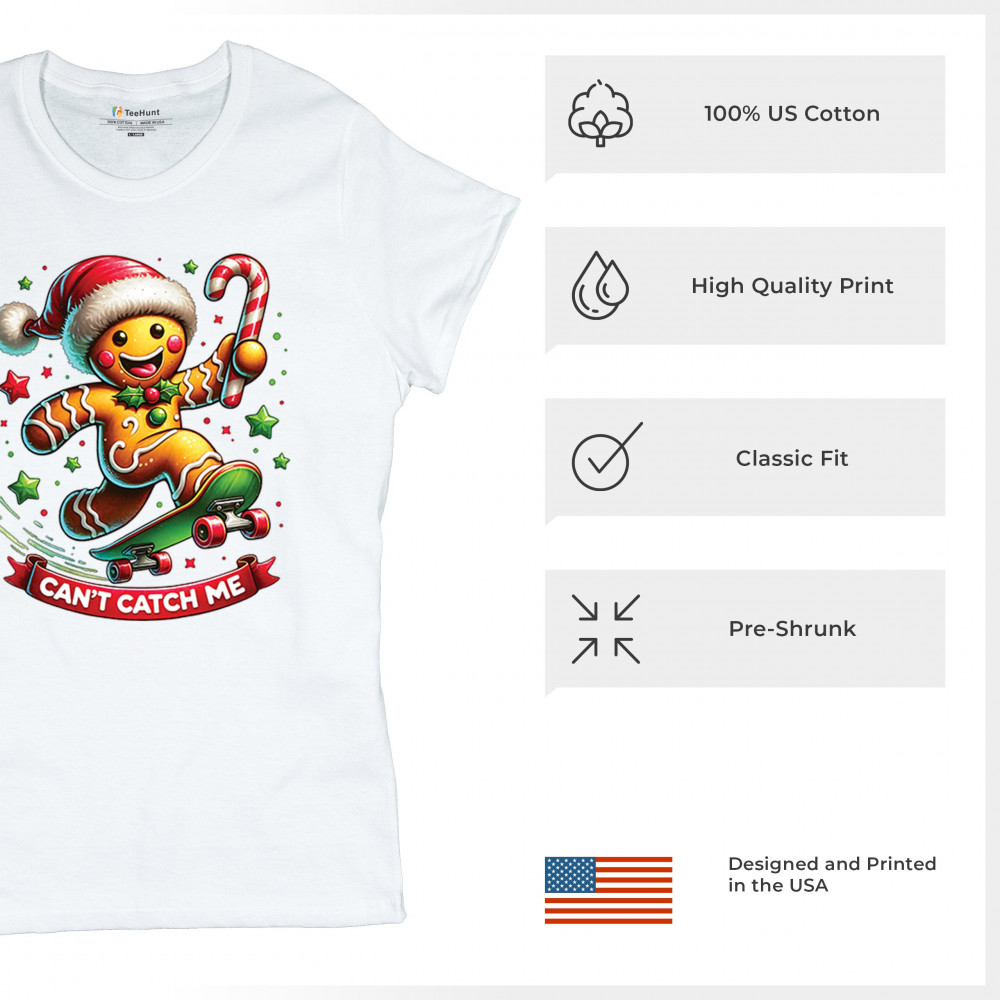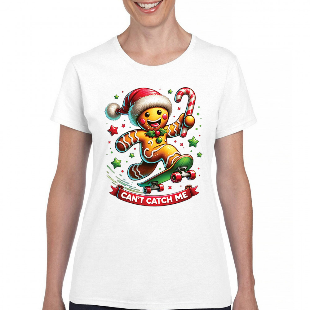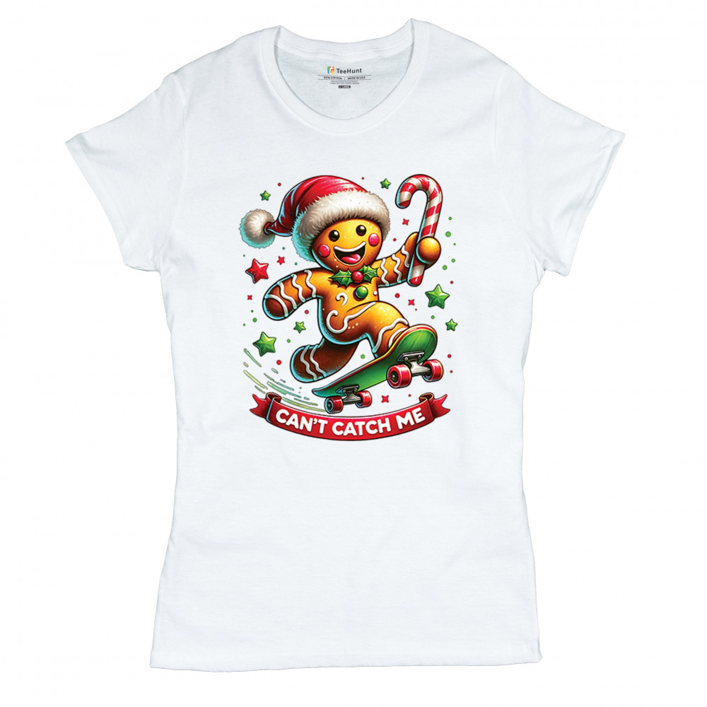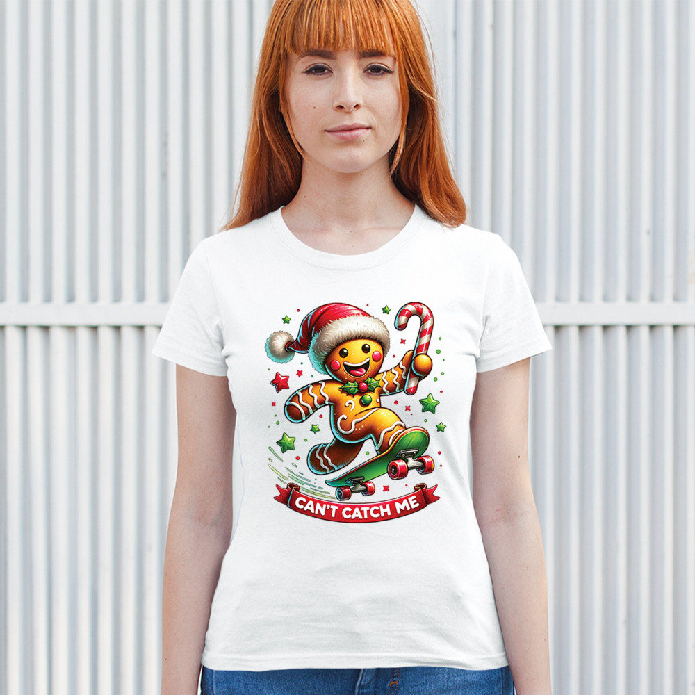 A fun Christmas design featuring a gingerbread character on a skateboard, candy cane in hand, and bright festive colors. Perfect for holiday party outfits, family gatherings, Christmas photos, festive humor fans, stocking stuffer gifting, winter celebrations, and anyone who loves playful seasonal graphics with cheerful personality.