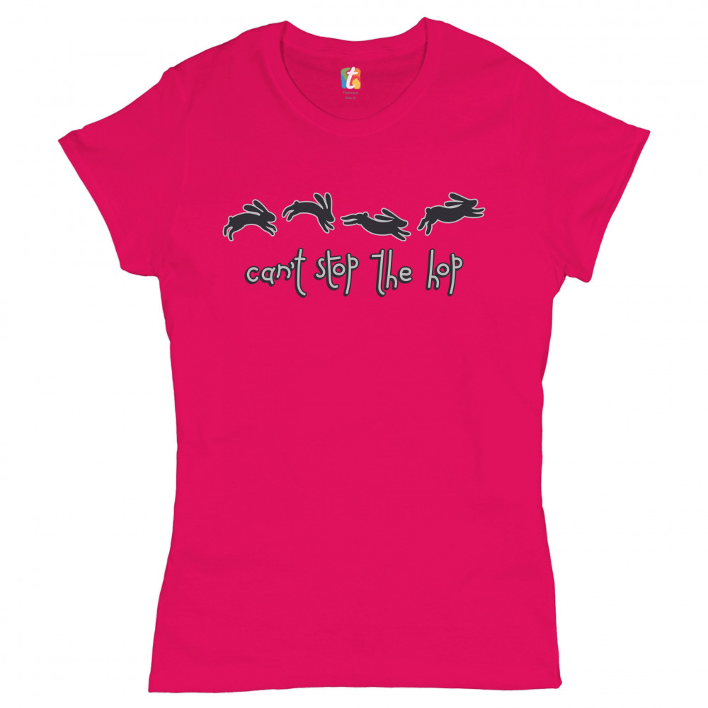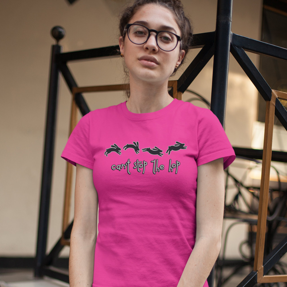 CAN'T STOP THE HOP t-shirt happy easter funny hopping rabbits women's tee pink