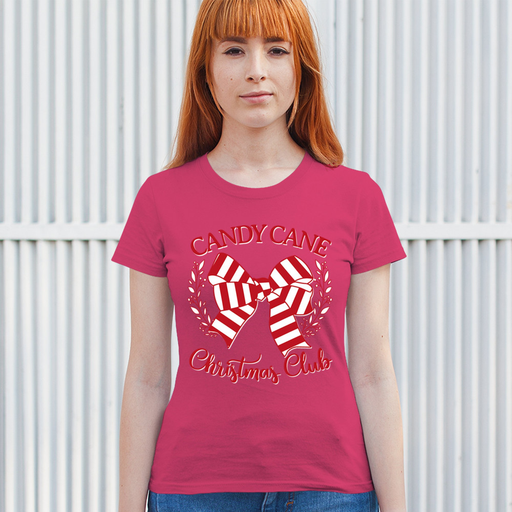 Celebrate the season with our Candy Cane Christmas Club design, crafted to spread holiday cheer with its classic red and white candy cane bow. Perfect for family gatherings, Secret Santa exchanges, or festive office parties, this charming design adds a joyful touch to any event. Ideal for matching his and hers outfits or as a cozy holiday gift, it’s a must-have for those looking to add a festive spirit. From holiday mornings to evening parties, it brings Christmas cheer to all!