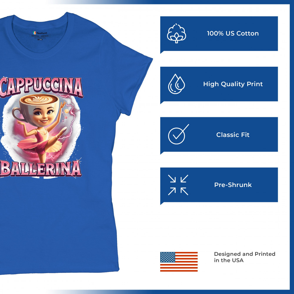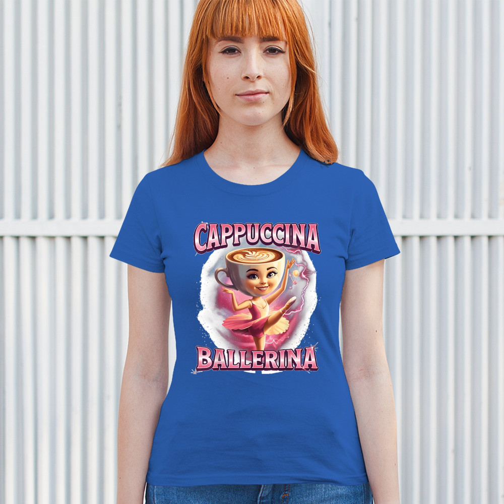 Cappuccina Ballerina is your perfect mix of meme chaos and coffee-core fashion. This absurd design features a ballet-dancing cappuccino head with weirdcore flair and Gen Z humor. A surreal blend of ironic internet fashion, TikTok trends, and espresso madness—ideal for meme lovers, caffeine addicts, and viral absurdists alike.