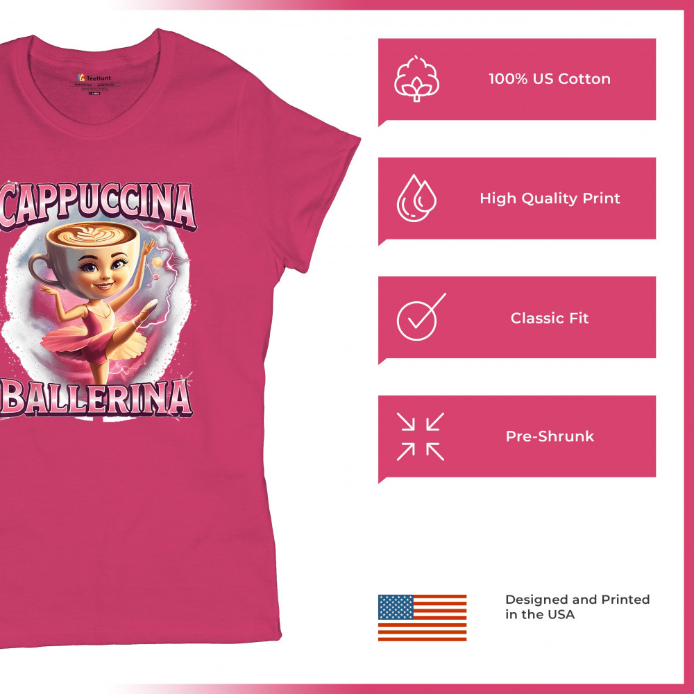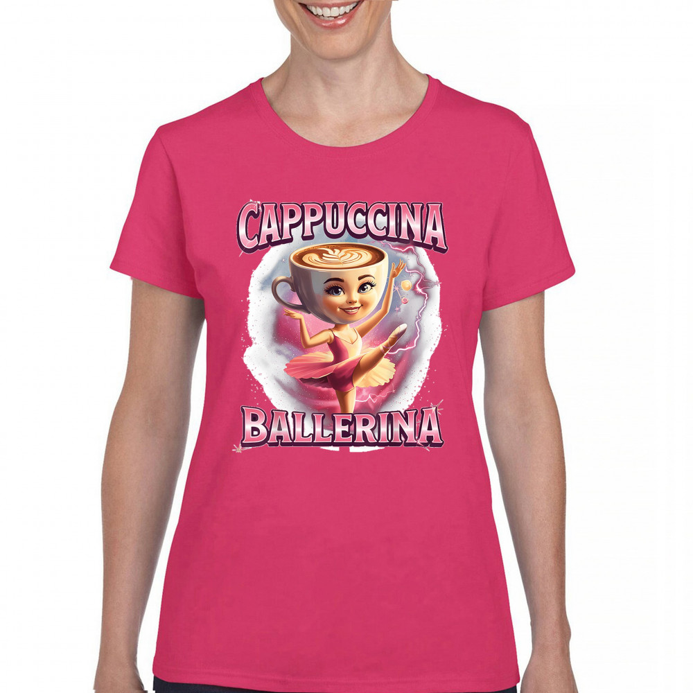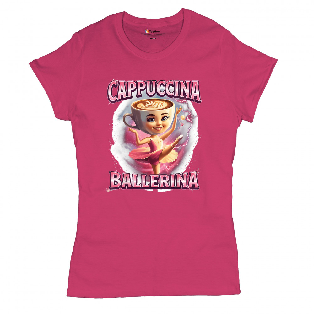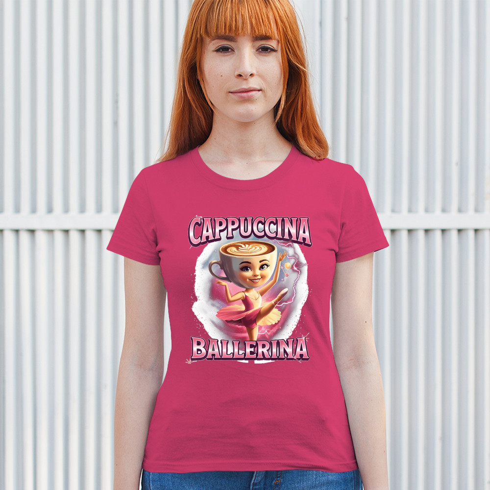 Cappuccina Ballerina is your perfect mix of meme chaos and coffee-core fashion. This absurd design features a ballet-dancing cappuccino head with weirdcore flair and Gen Z humor. A surreal blend of ironic internet fashion, TikTok trends, and espresso madness—ideal for meme lovers, caffeine addicts, and viral absurdists alike.