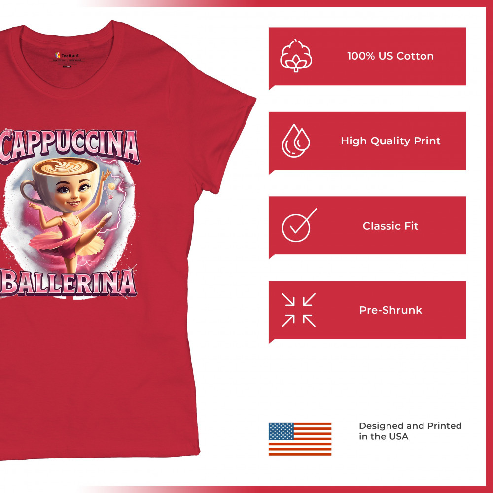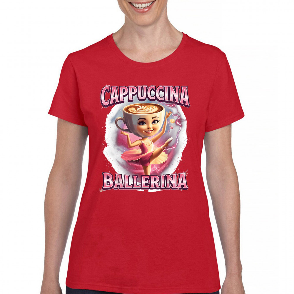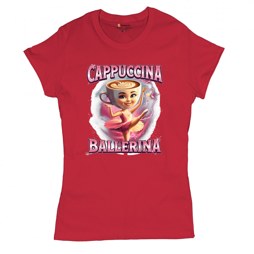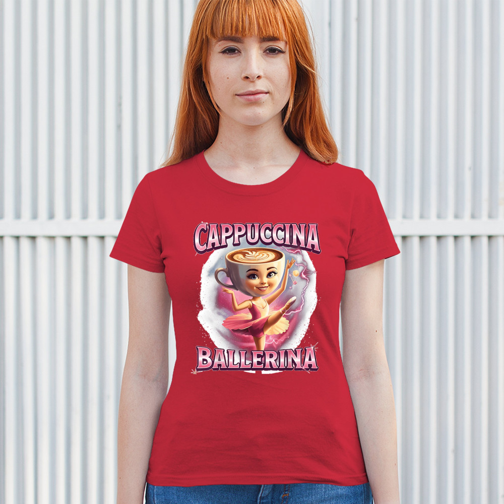Cappuccina Ballerina is your perfect mix of meme chaos and coffee-core fashion. This absurd design features a ballet-dancing cappuccino head with weirdcore flair and Gen Z humor. A surreal blend of ironic internet fashion, TikTok trends, and espresso madness—ideal for meme lovers, caffeine addicts, and viral absurdists alike.
