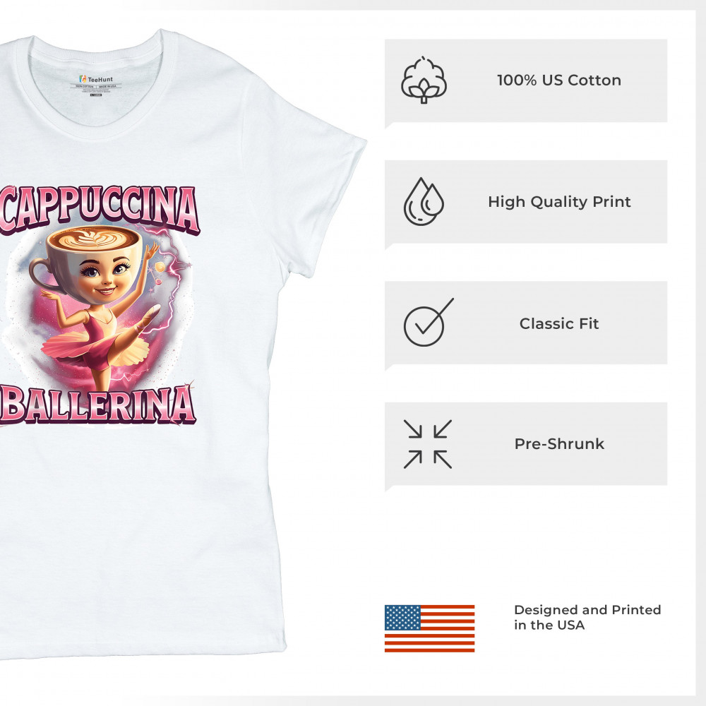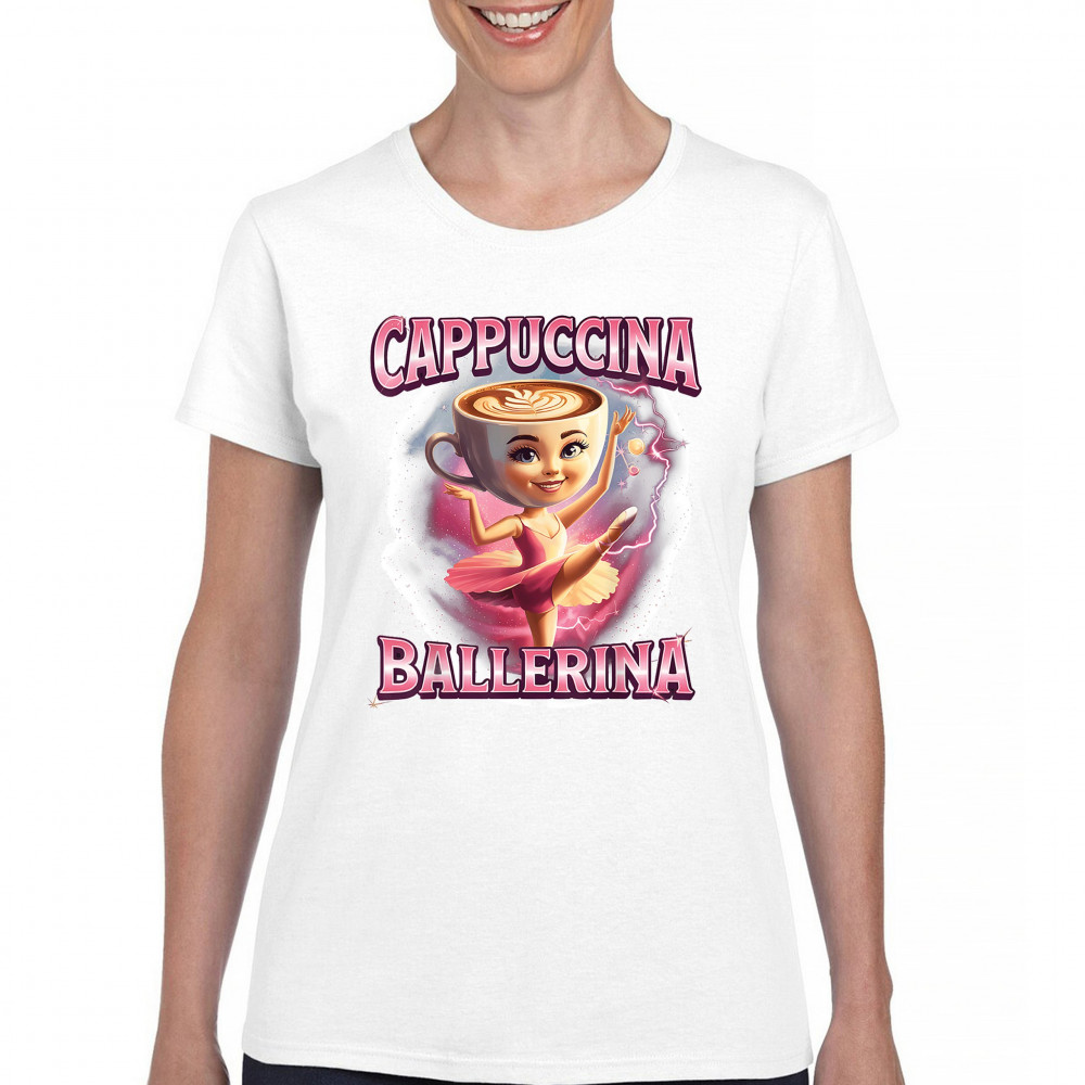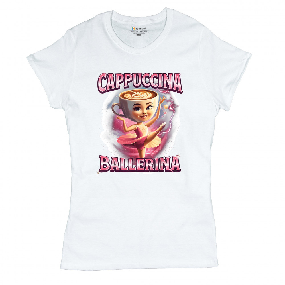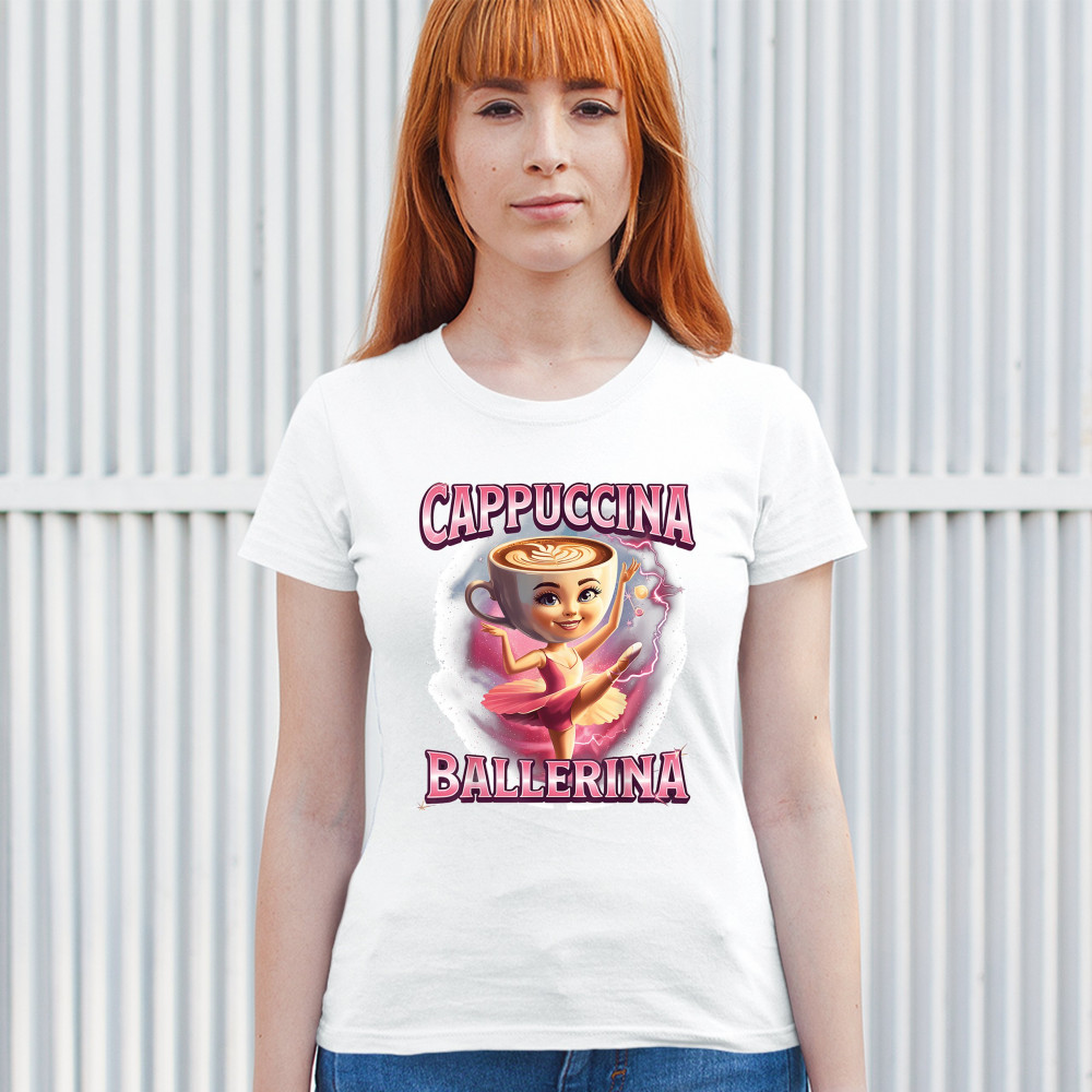 Cappuccina Ballerina is your perfect mix of meme chaos and coffee-core fashion. This absurd design features a ballet-dancing cappuccino head with weirdcore flair and Gen Z humor. A surreal blend of ironic internet fashion, TikTok trends, and espresso madness—ideal for meme lovers, caffeine addicts, and viral absurdists alike.