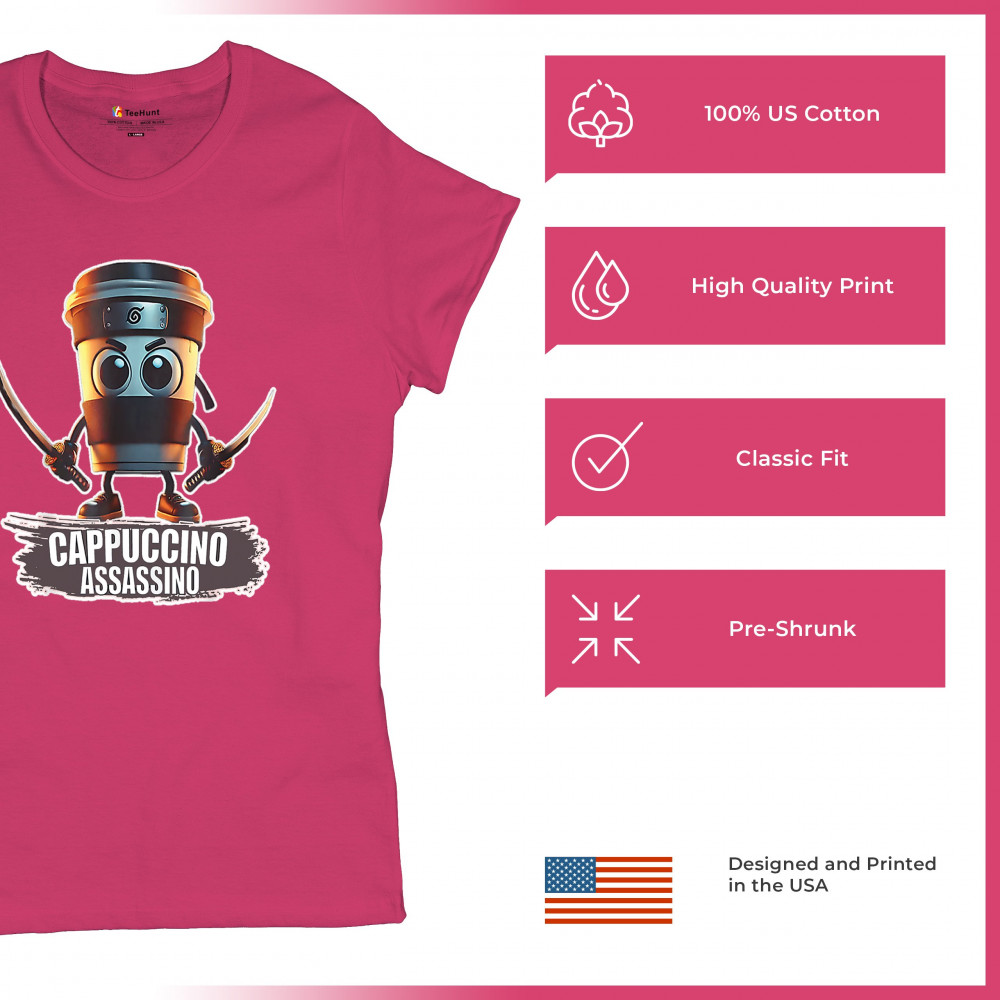 Cappuccino Assassino fuses cursed coffee memes, ninja chaos, ironic TikTok fashion, espresso humor, and Gen Z internet absurdity.