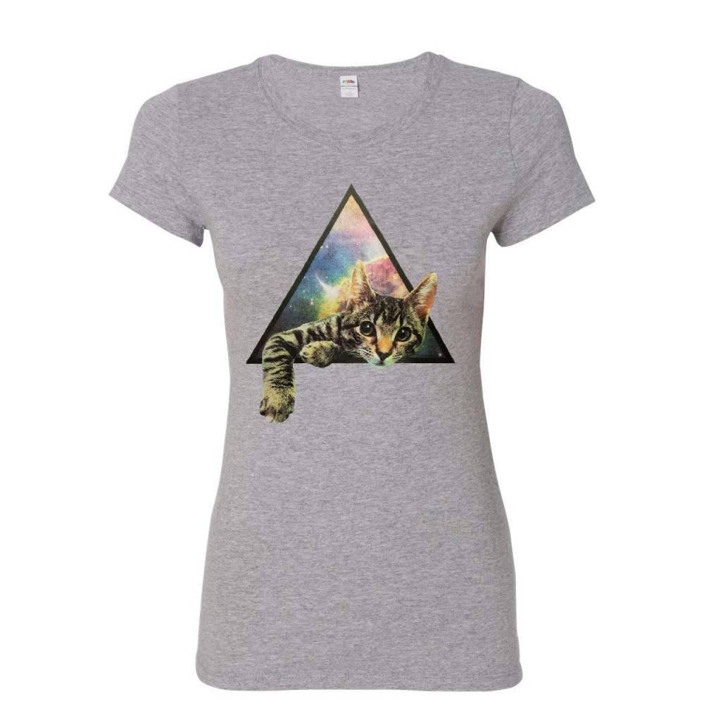 GALAXY CAT women's t-shirt cute kitten pet universe cotton tee gray