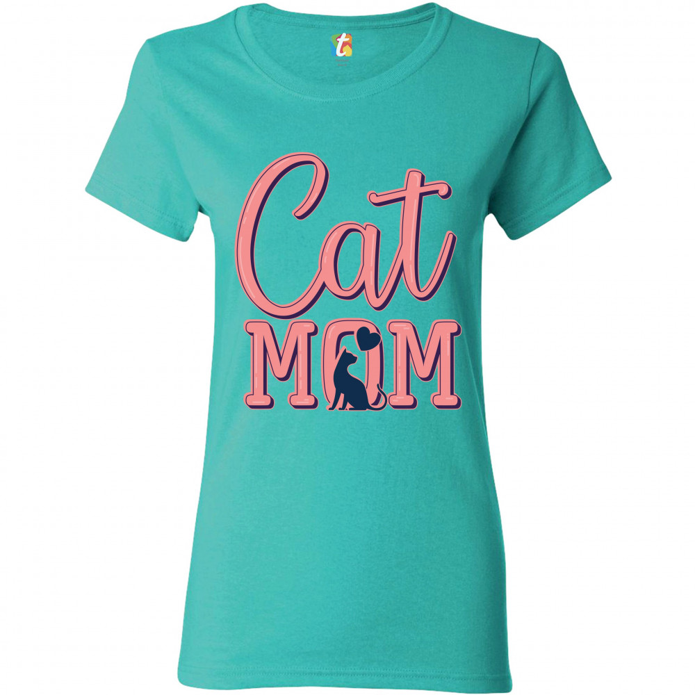 CAT MOM t-shirt mother's day i love my my pet lover mama women's tee light blue