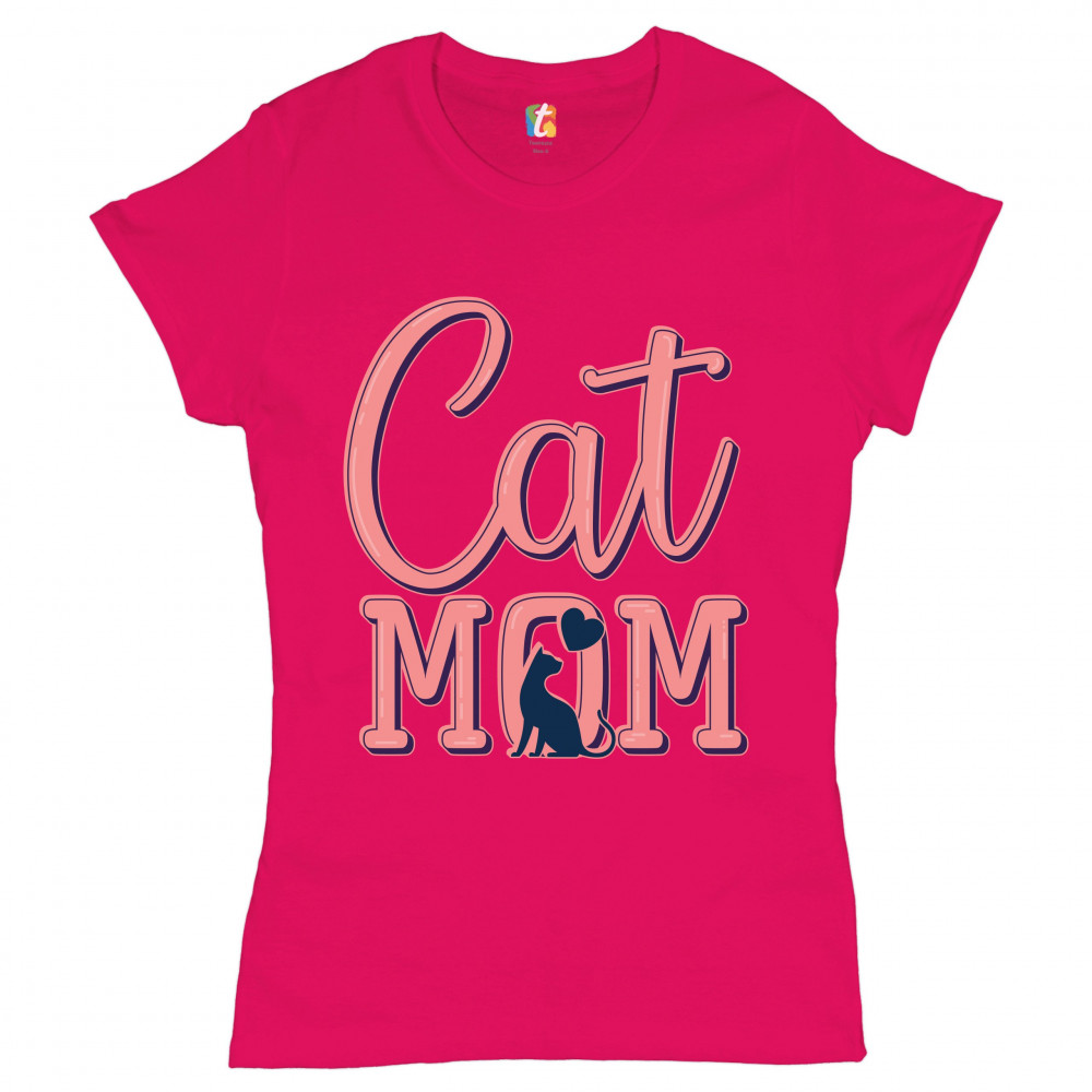 CAT MOM t-shirt mother's day i love my my pet lover mama women's tee pink