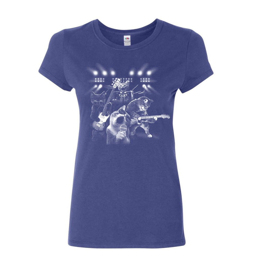 CATS ROCK CONCERT women's t-shirt rock & roll cat lover kitten music shirt blue