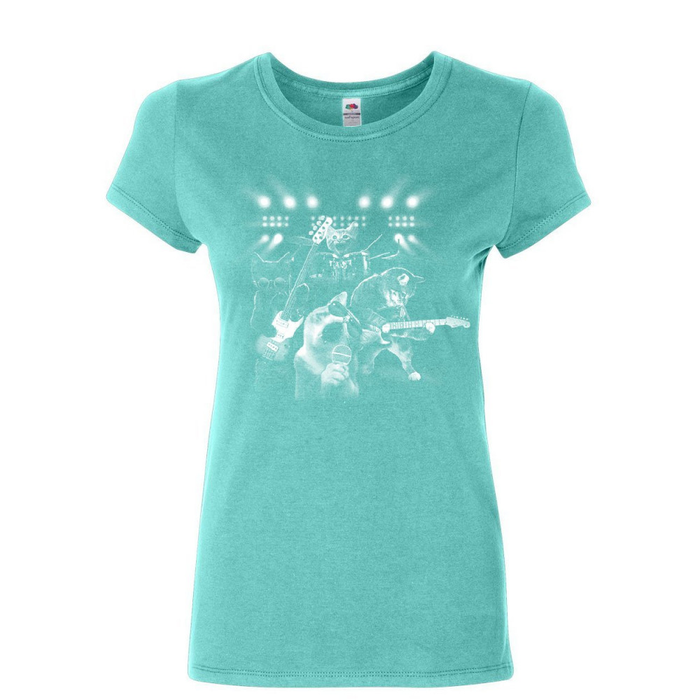 CATS ROCK CONCERT women's t-shirt rock & roll cat lover kitten music shirt light blue