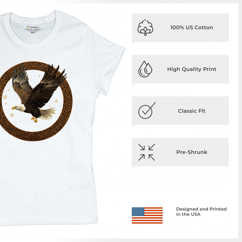 Bald eagle flying in Celtic circle with stars. A bold symbol of freedom, spiritual power, and protection—perfect for patriots and seekers.