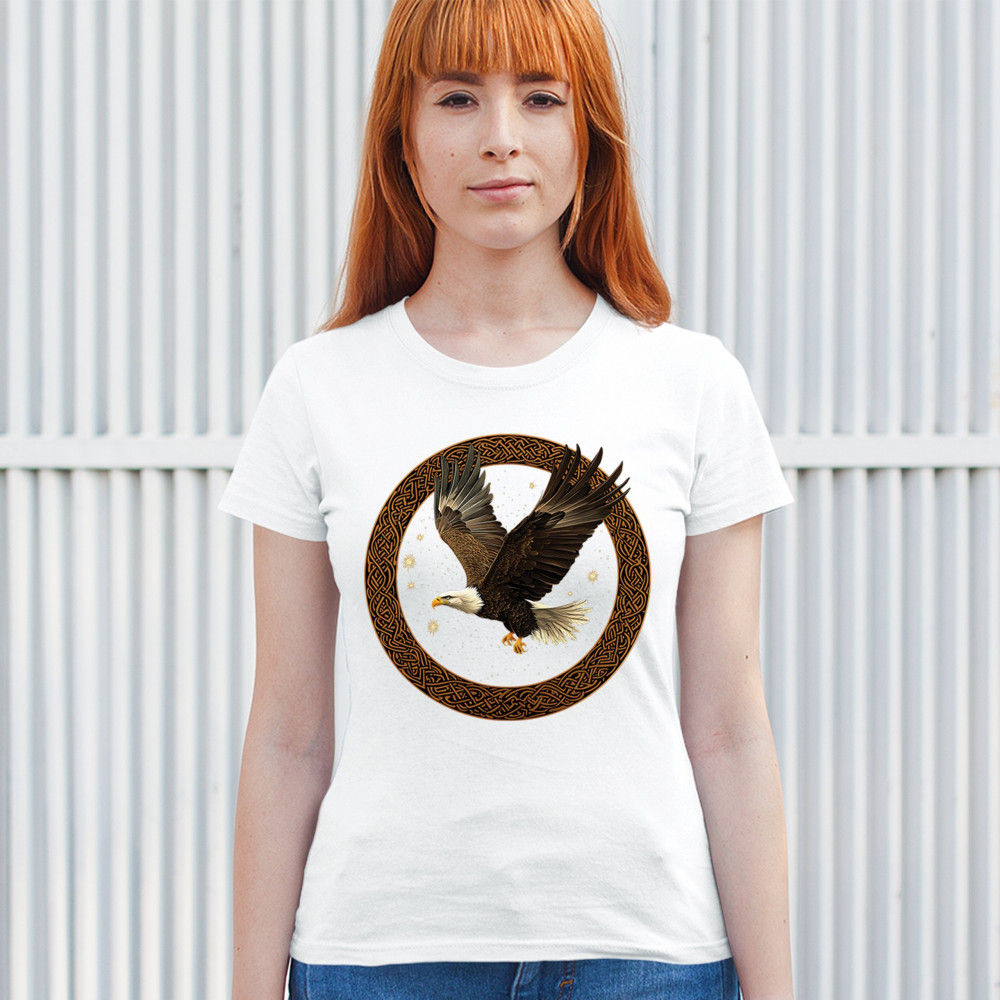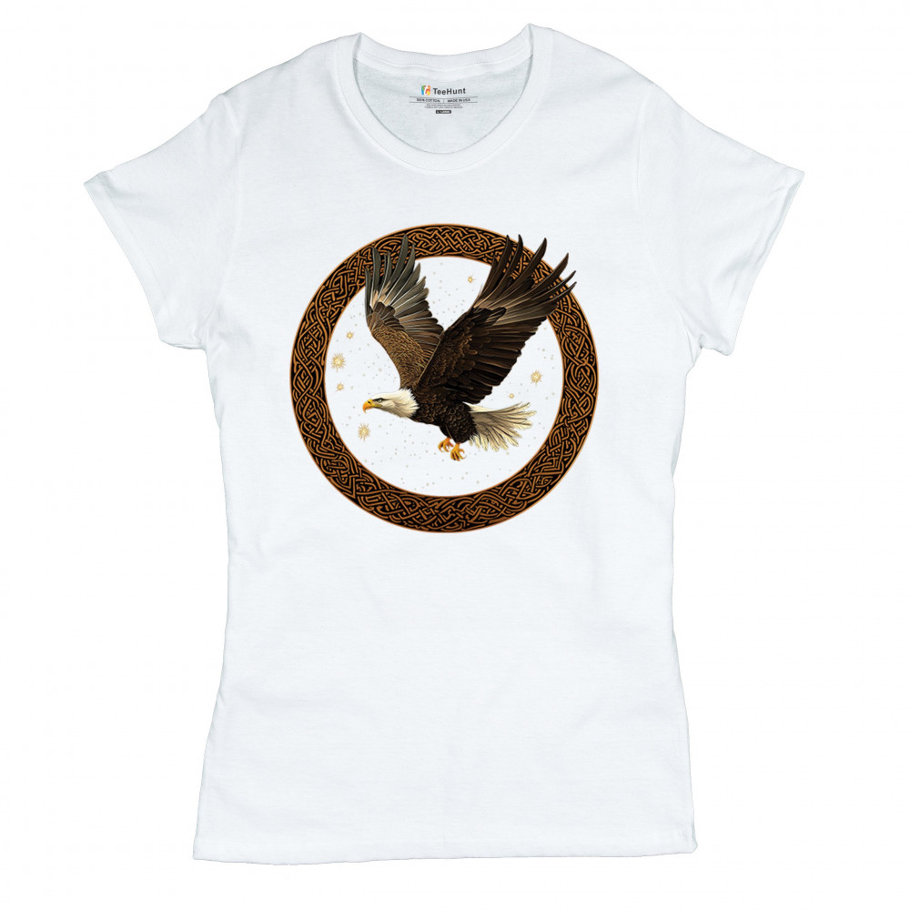 This powerful bald eagle takes flight within a Celtic knotwork circle, radiating strength, independence, and cosmic energy. The glowing stars and celestial background add mystic symbolism, blending nature, tribal design, and spirituality. Perfect for patriots, spiritual seekers, and bird enthusiasts.