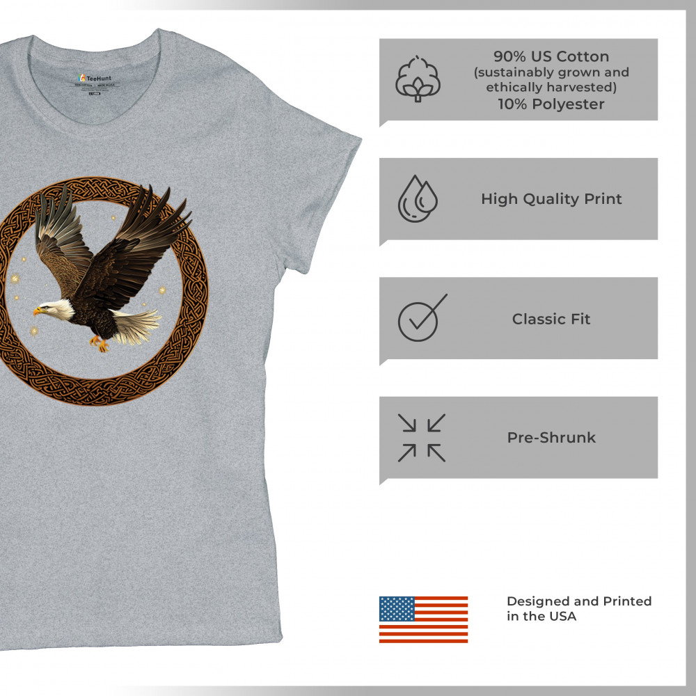Bald eagle flying in Celtic circle with stars. A bold symbol of freedom, spiritual power, and protection—perfect for patriots and seekers.