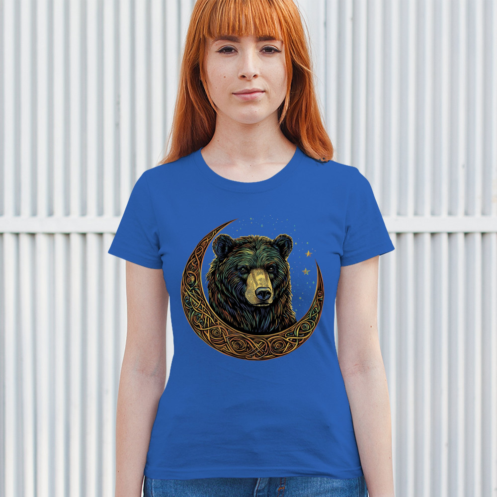 An enchanting design showcasing a powerful bear wrapped in a Celtic-style crescent moon. This graphic blends tribal symbolism, lunar phases, and forest mysticism to create a bold visual statement. Ideal for spiritual seekers, nature lovers, and those who admire magical artwork, animals, and celestial energy.
