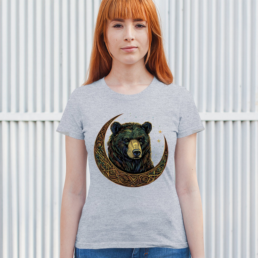 An enchanting design showcasing a powerful bear wrapped in a Celtic-style crescent moon. This graphic blends tribal symbolism, lunar phases, and forest mysticism to create a bold visual statement. Ideal for spiritual seekers, nature lovers, and those who admire magical artwork, animals, and celestial energy.