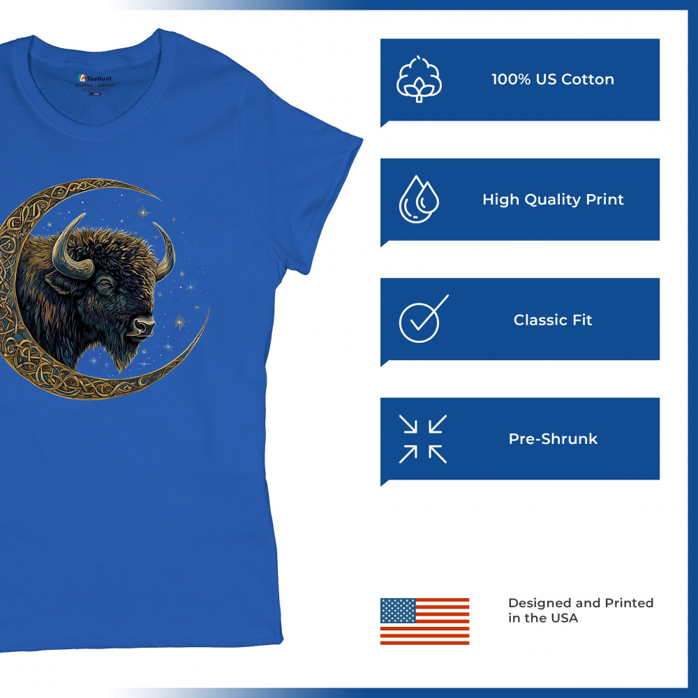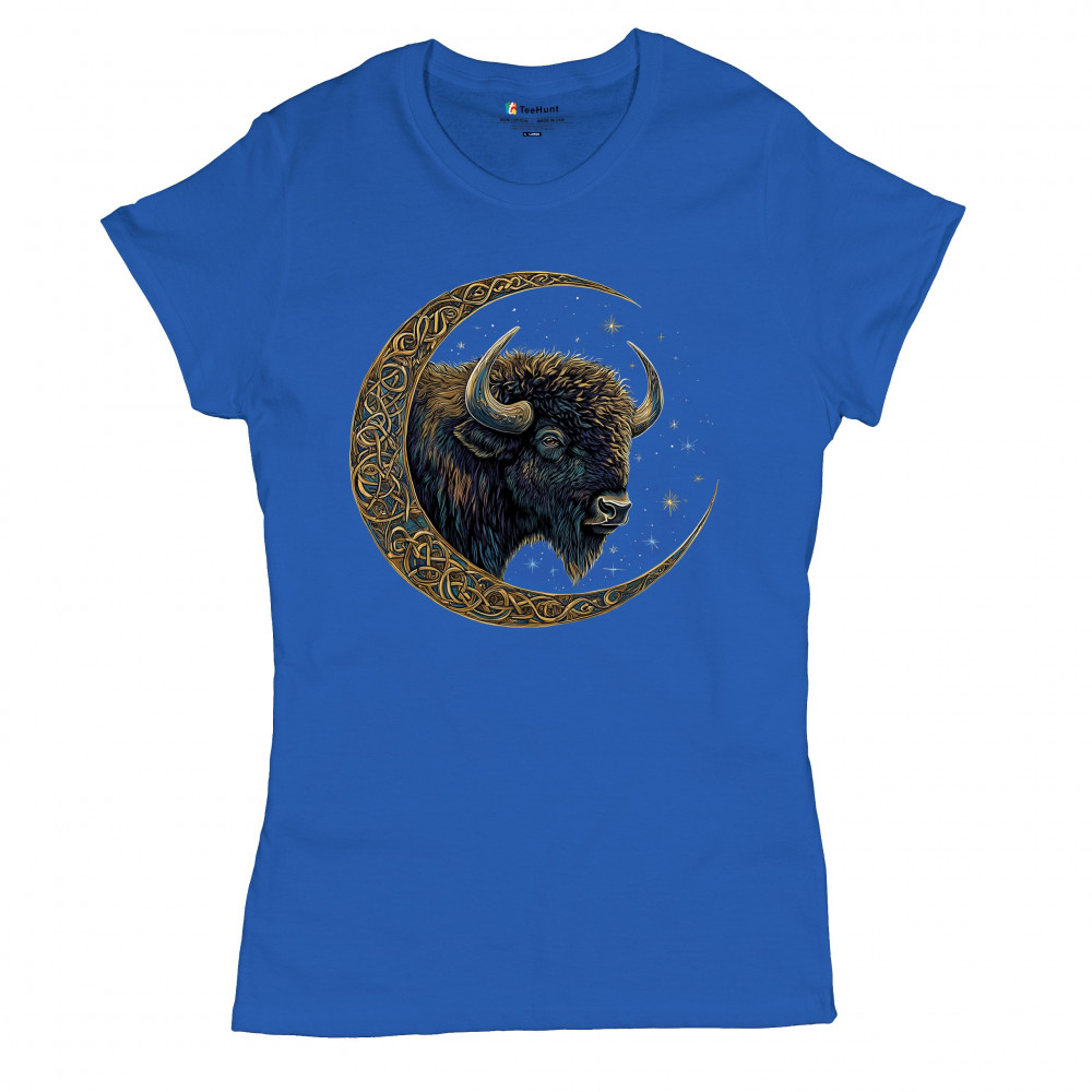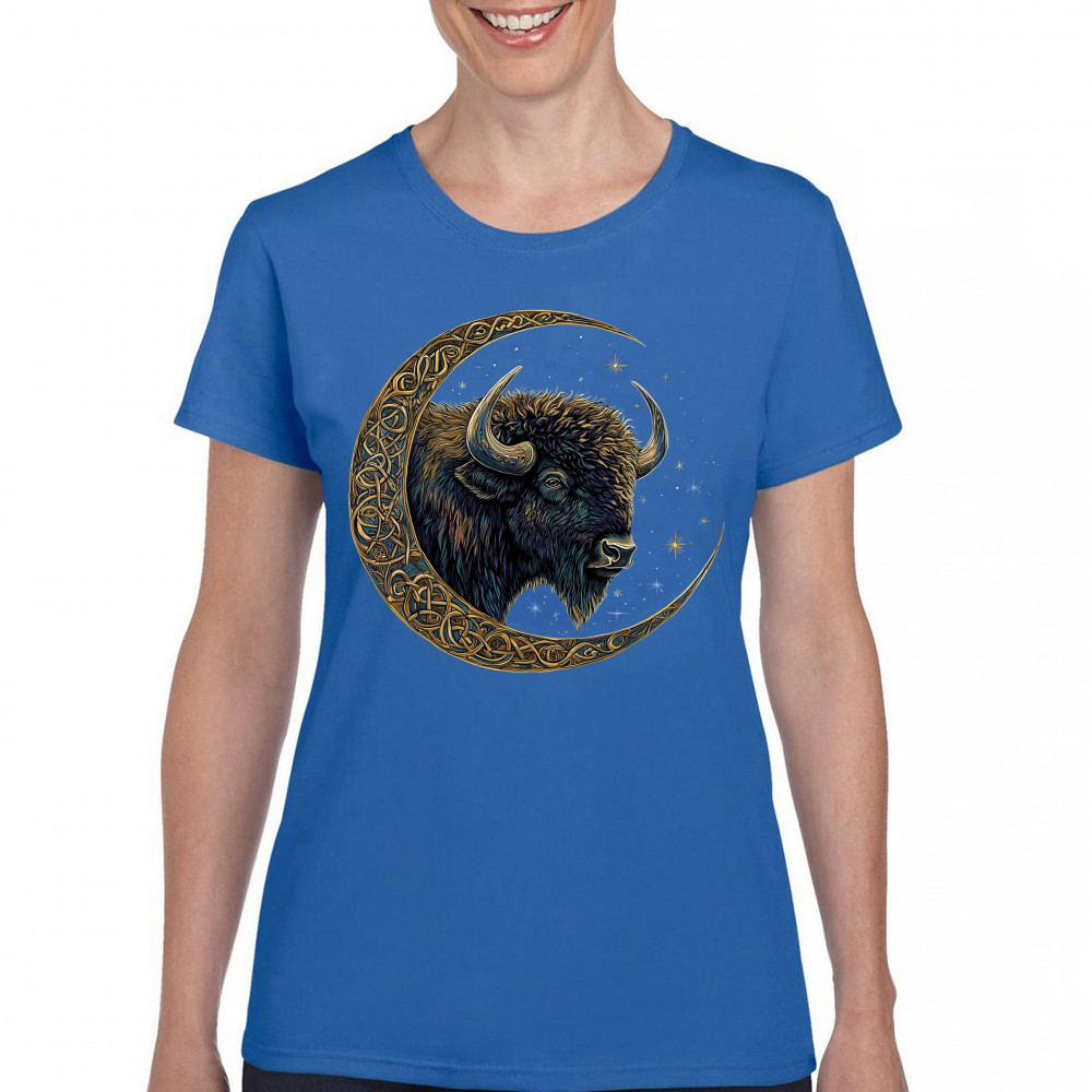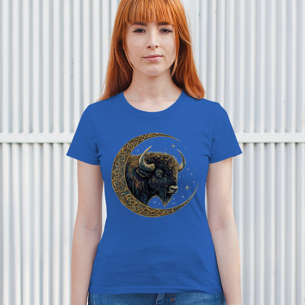 Mystical bison in Celtic moon—perfect for spiritual seekers, art fans, stargazers, and lovers of nature, tribal design, and cosmic energy.