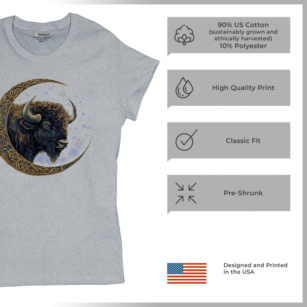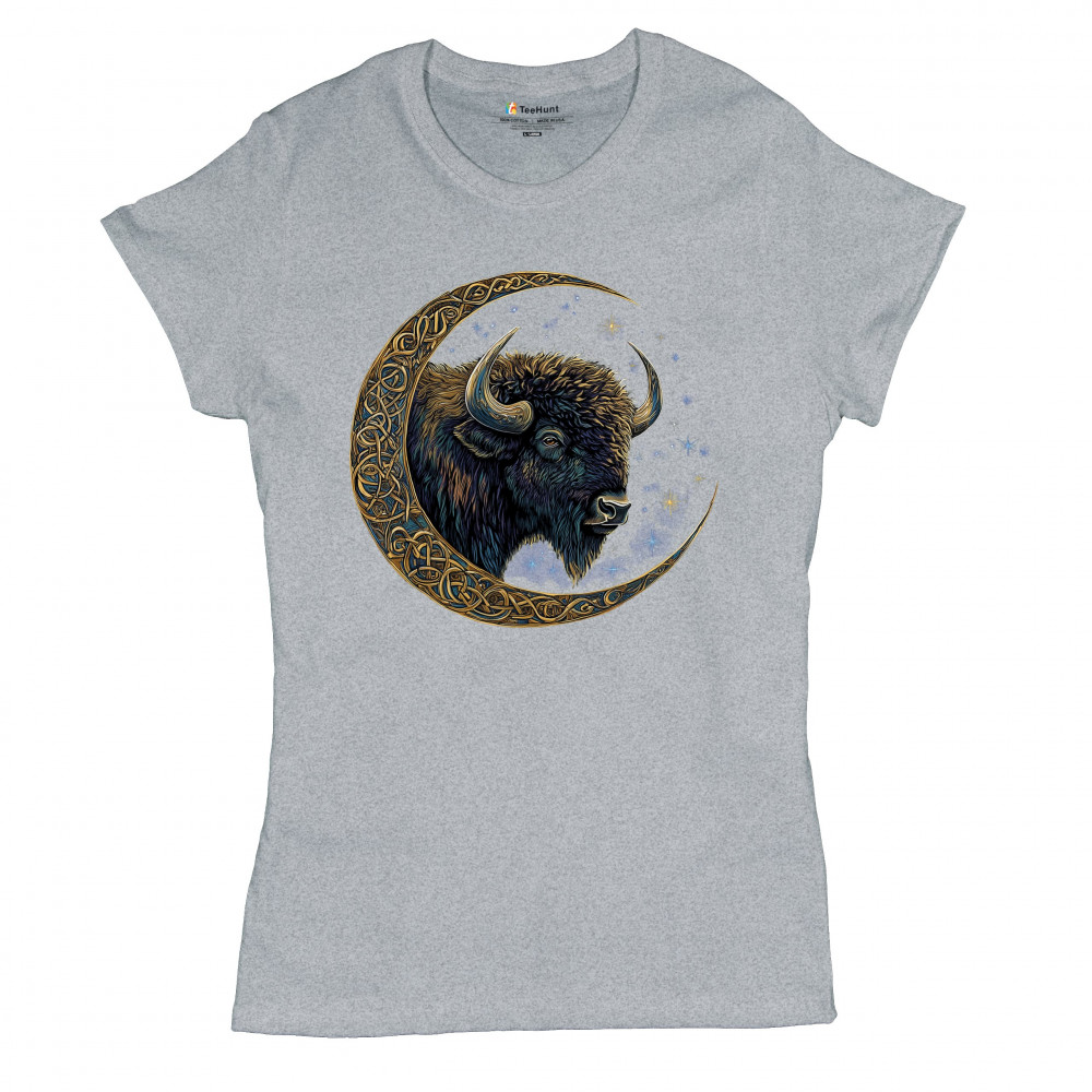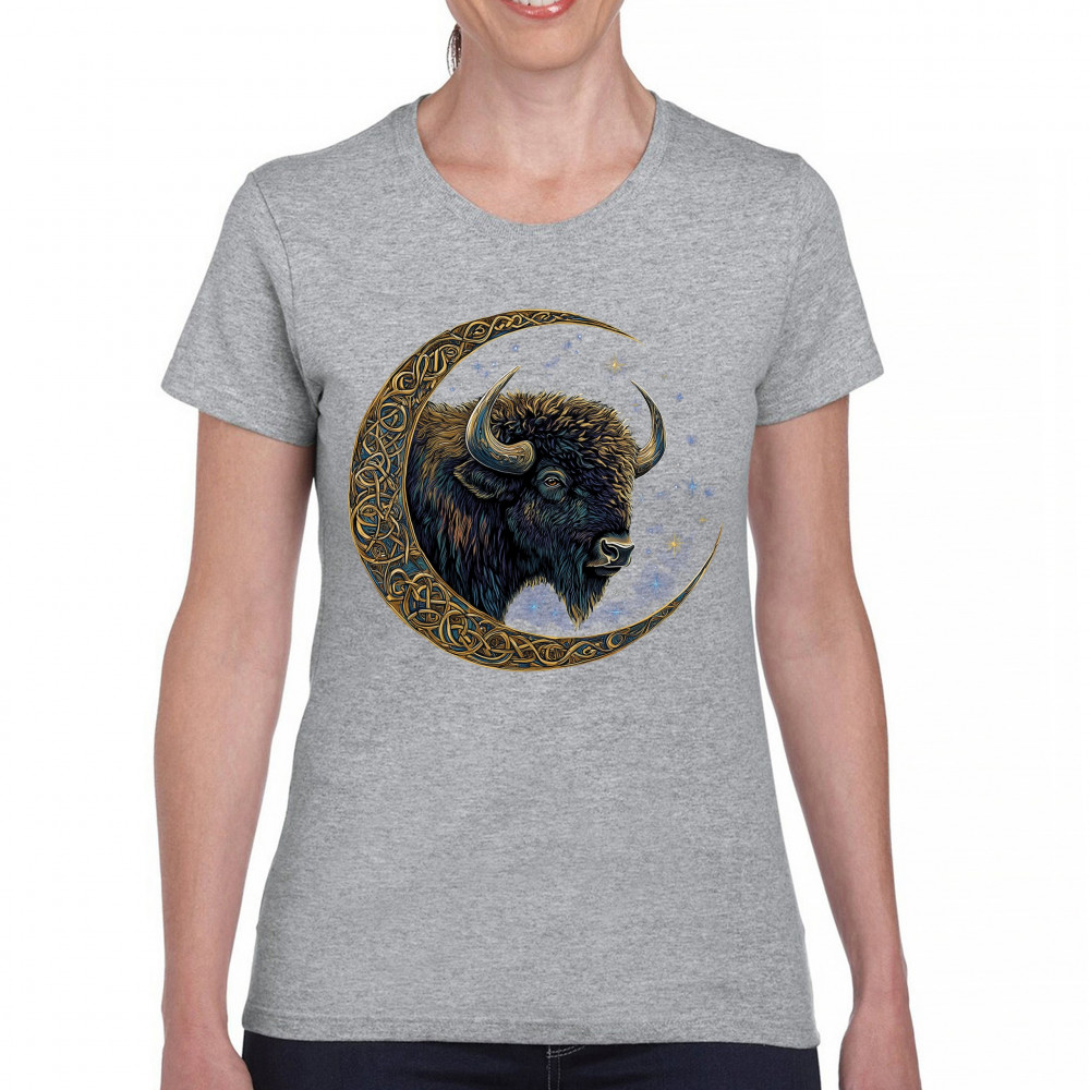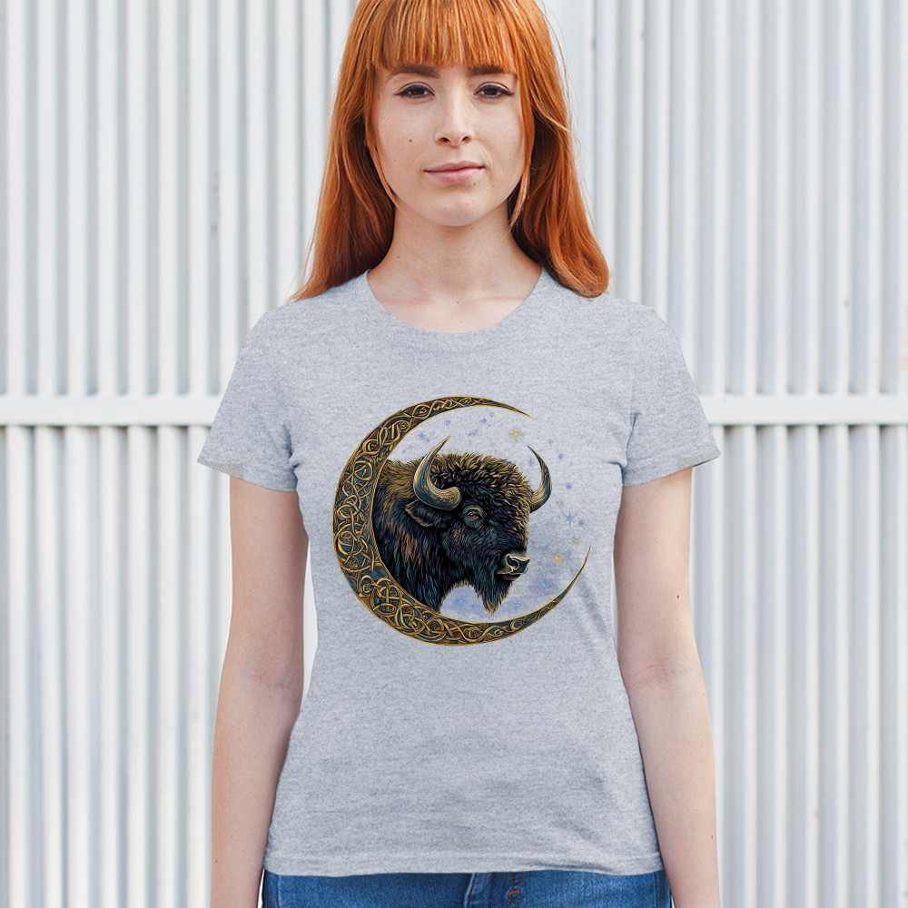 Mystical bison in Celtic moon—perfect for spiritual seekers, art fans, stargazers, and lovers of nature, tribal design, and cosmic energy.