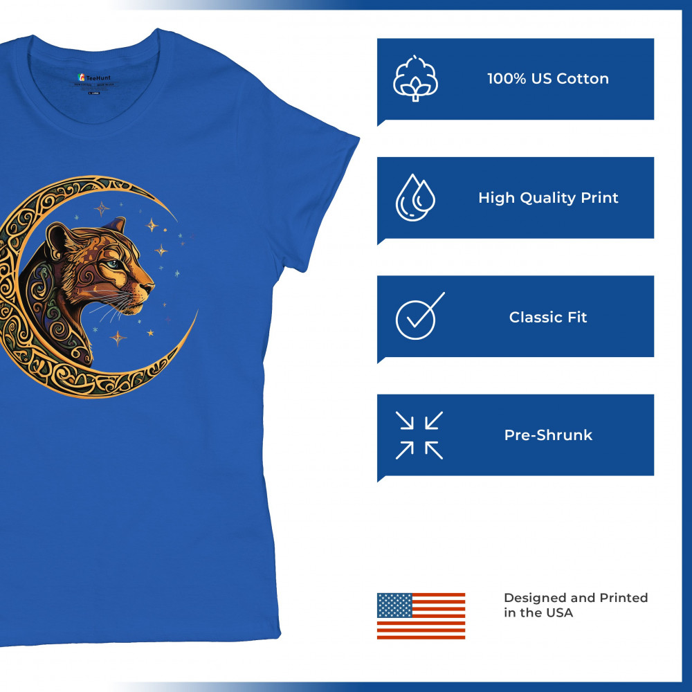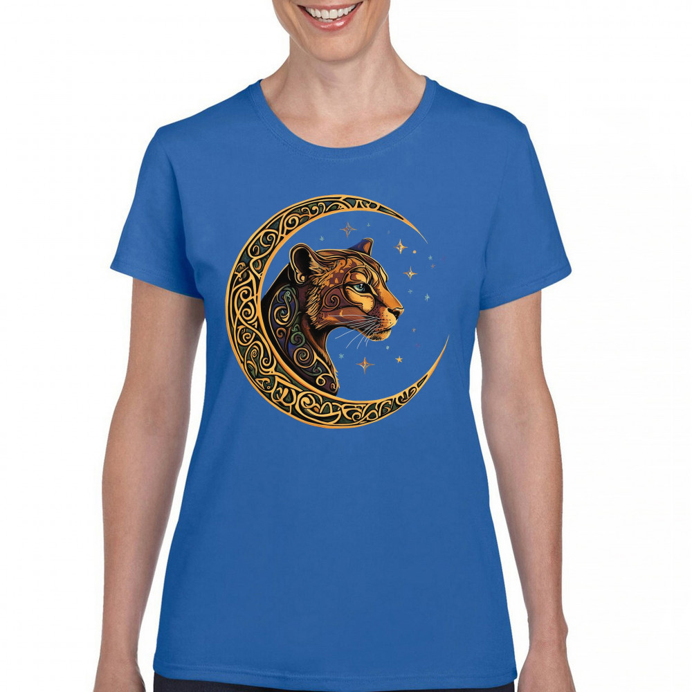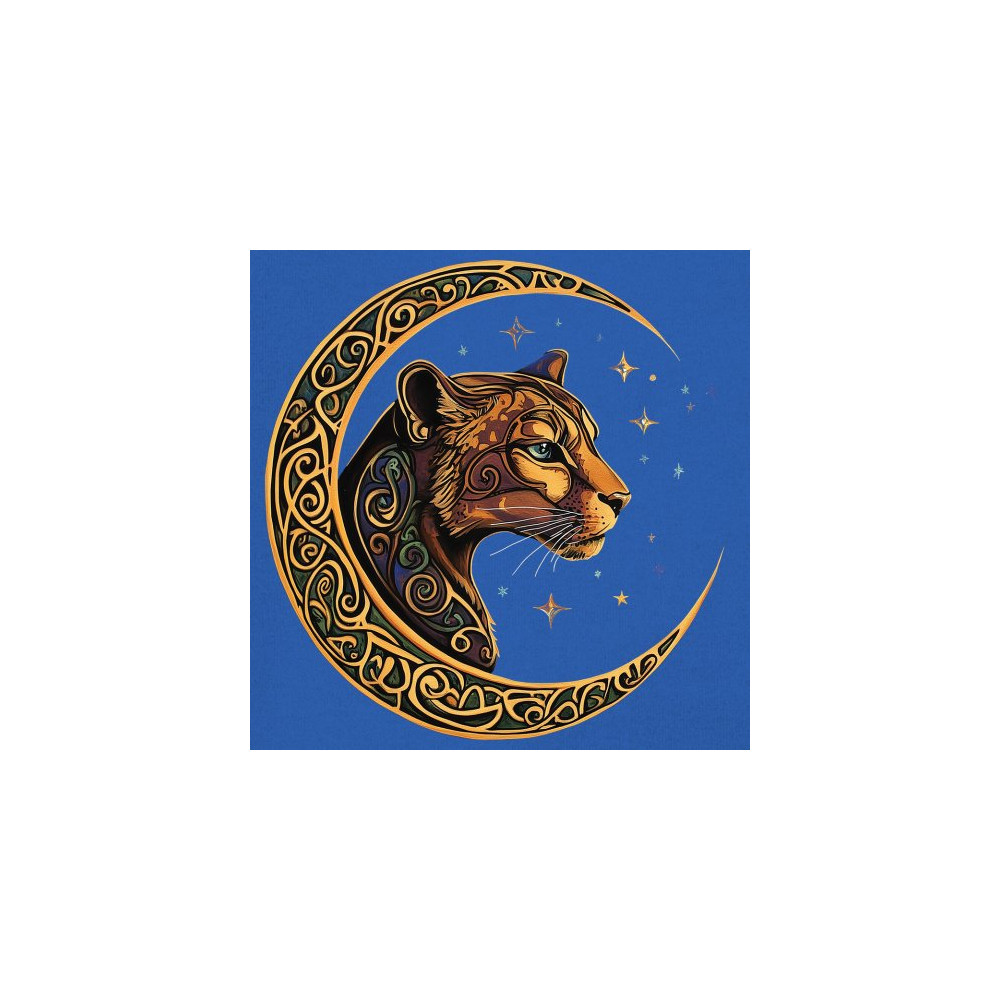 Mystical and elegant, this celestial leopard design merges wild animal strength with spiritual energy. Framed by a golden Celtic crescent moon and set against a starlit sky, it captures themes of nature, intuition, tribal symbolism, fantasy, and feminine power. Ideal for astrology fans, animal lovers, and seekers of cosmic connection.