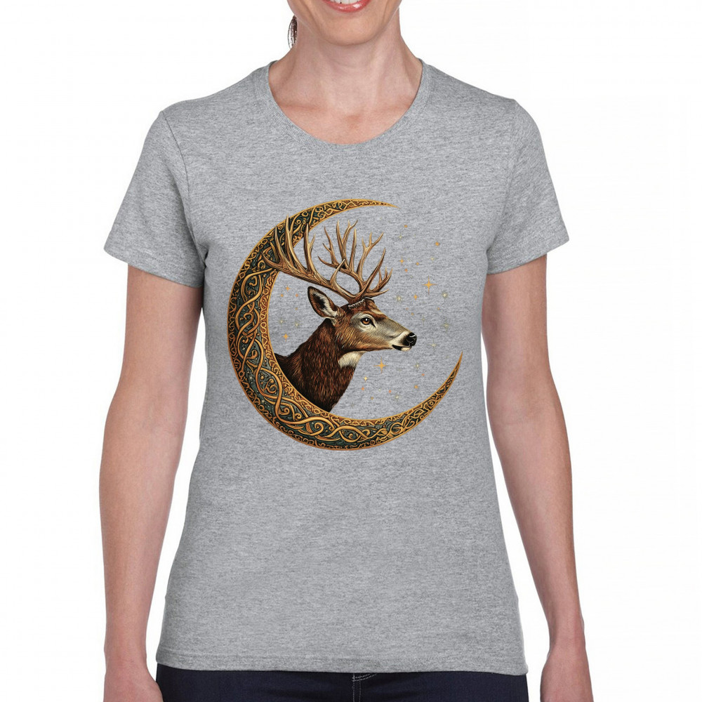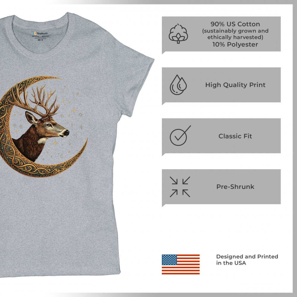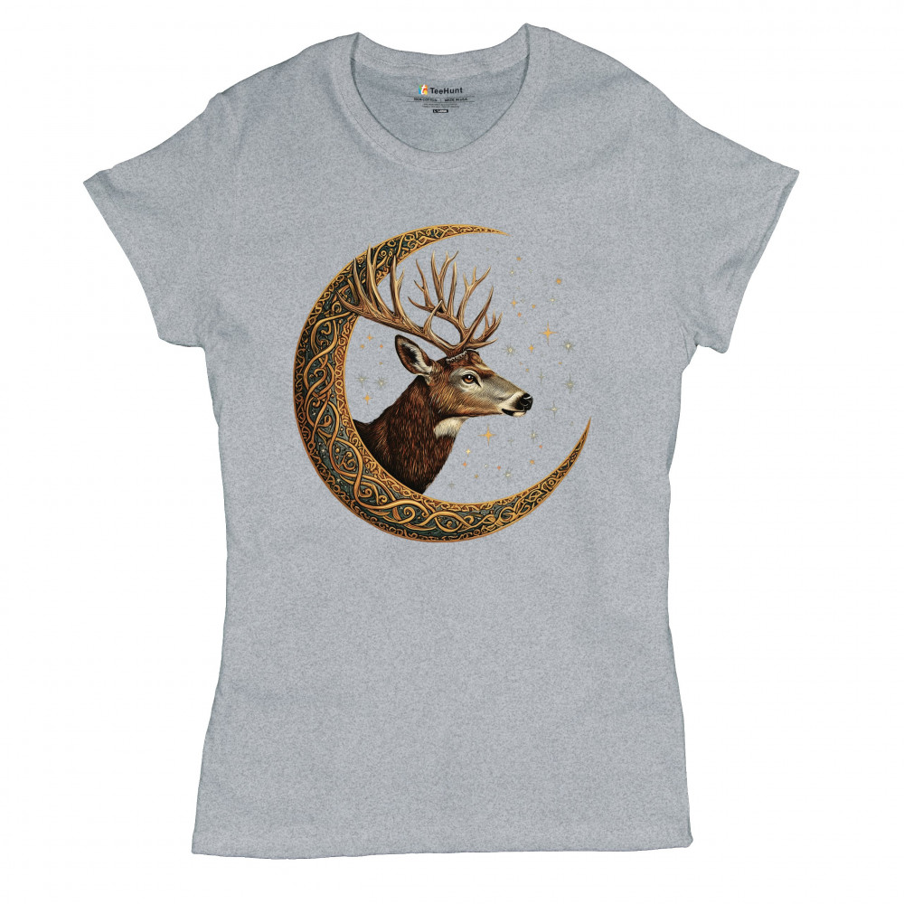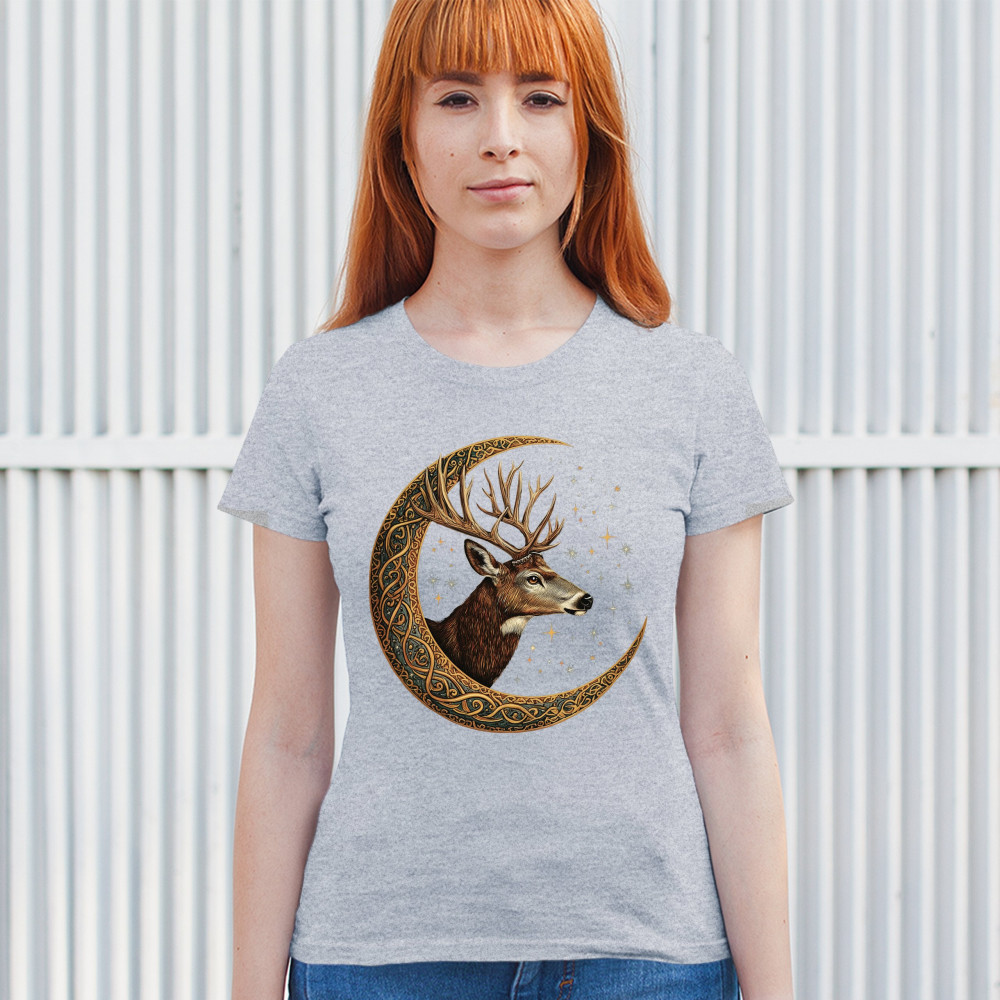 Majestic deer in Celtic moon with stars—symbol of protection, nature, and cosmic wisdom. A mystical gift for hunters, druids, and forest lovers.