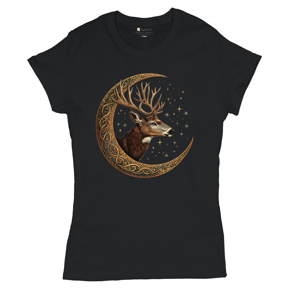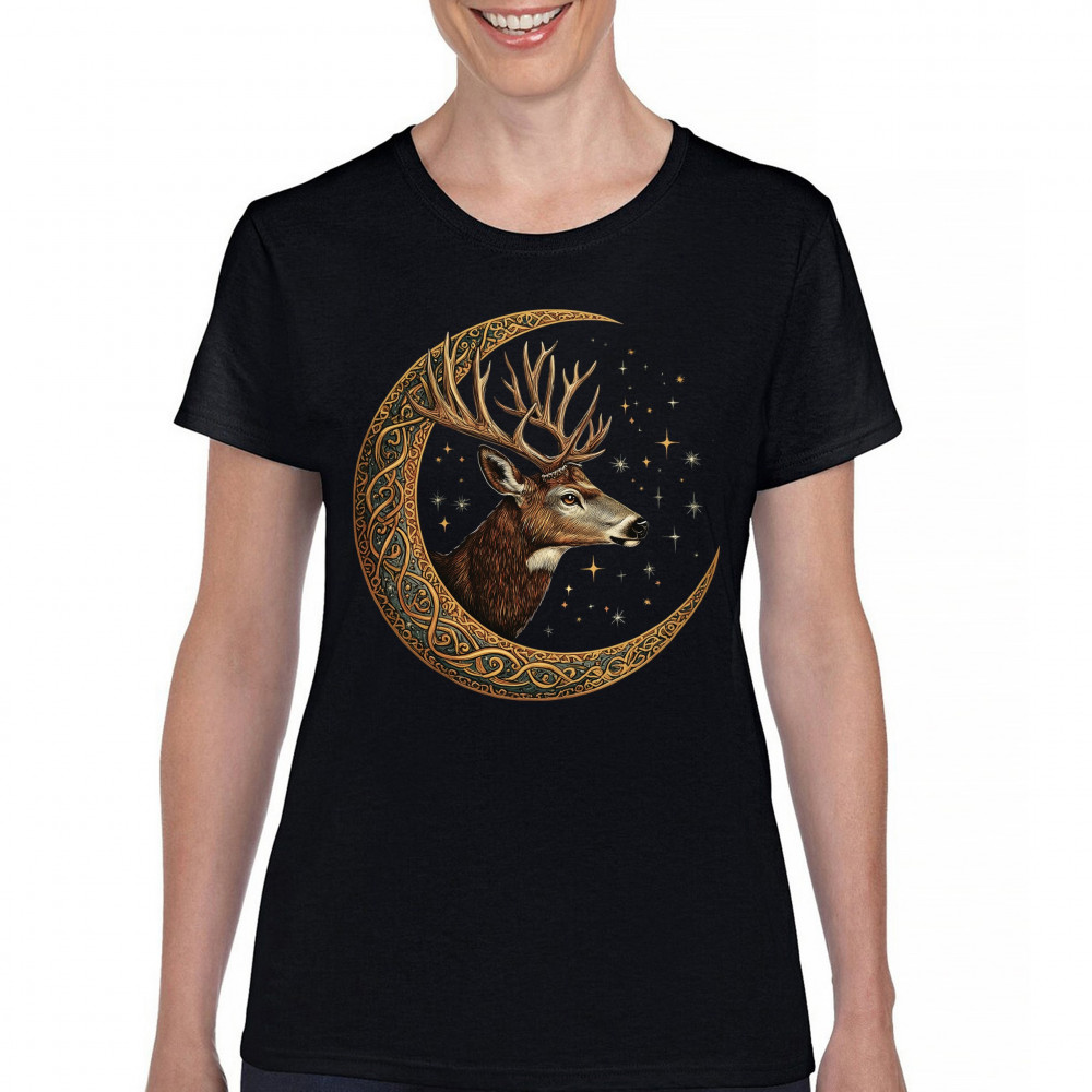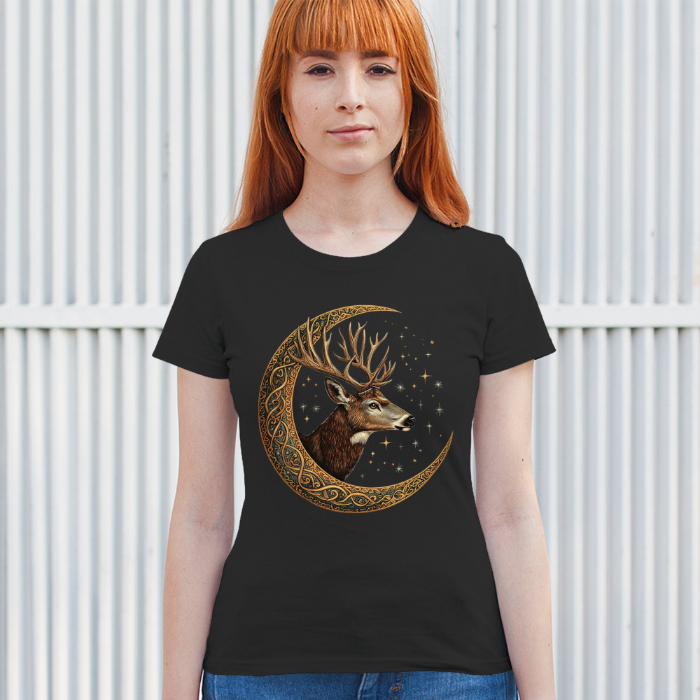 Majestic deer in Celtic moon with stars—symbol of protection, nature, and cosmic wisdom. A mystical gift for hunters, druids, and forest lovers.