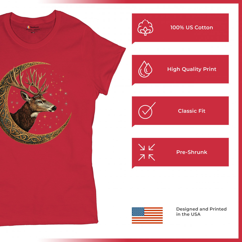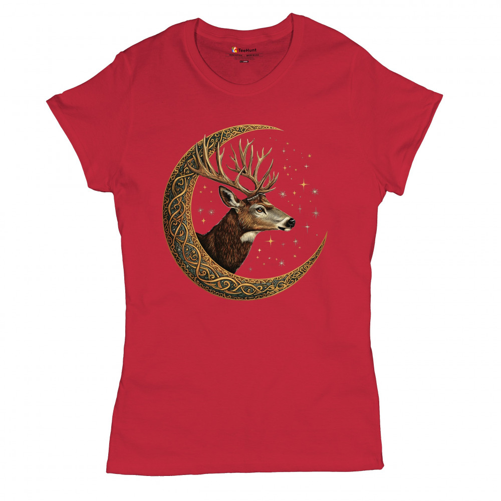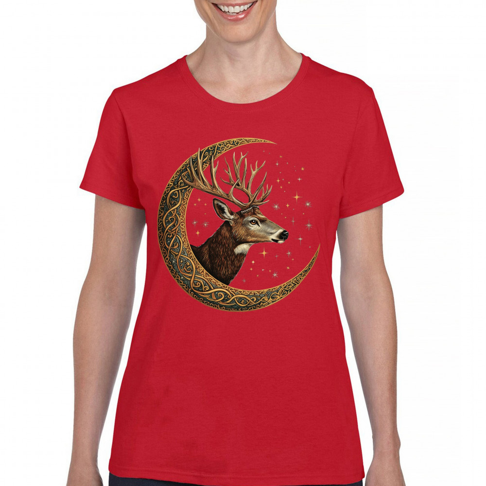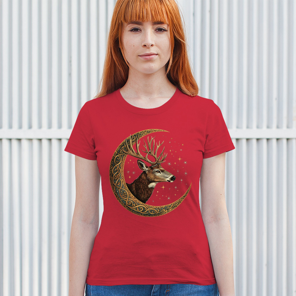Majestic deer in Celtic moon with stars—symbol of protection, nature, and cosmic wisdom. A mystical gift for hunters, druids, and forest lovers.