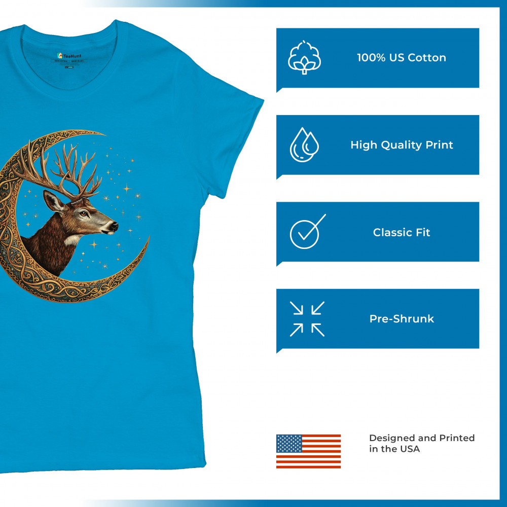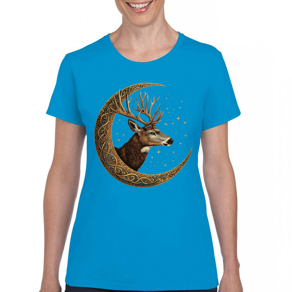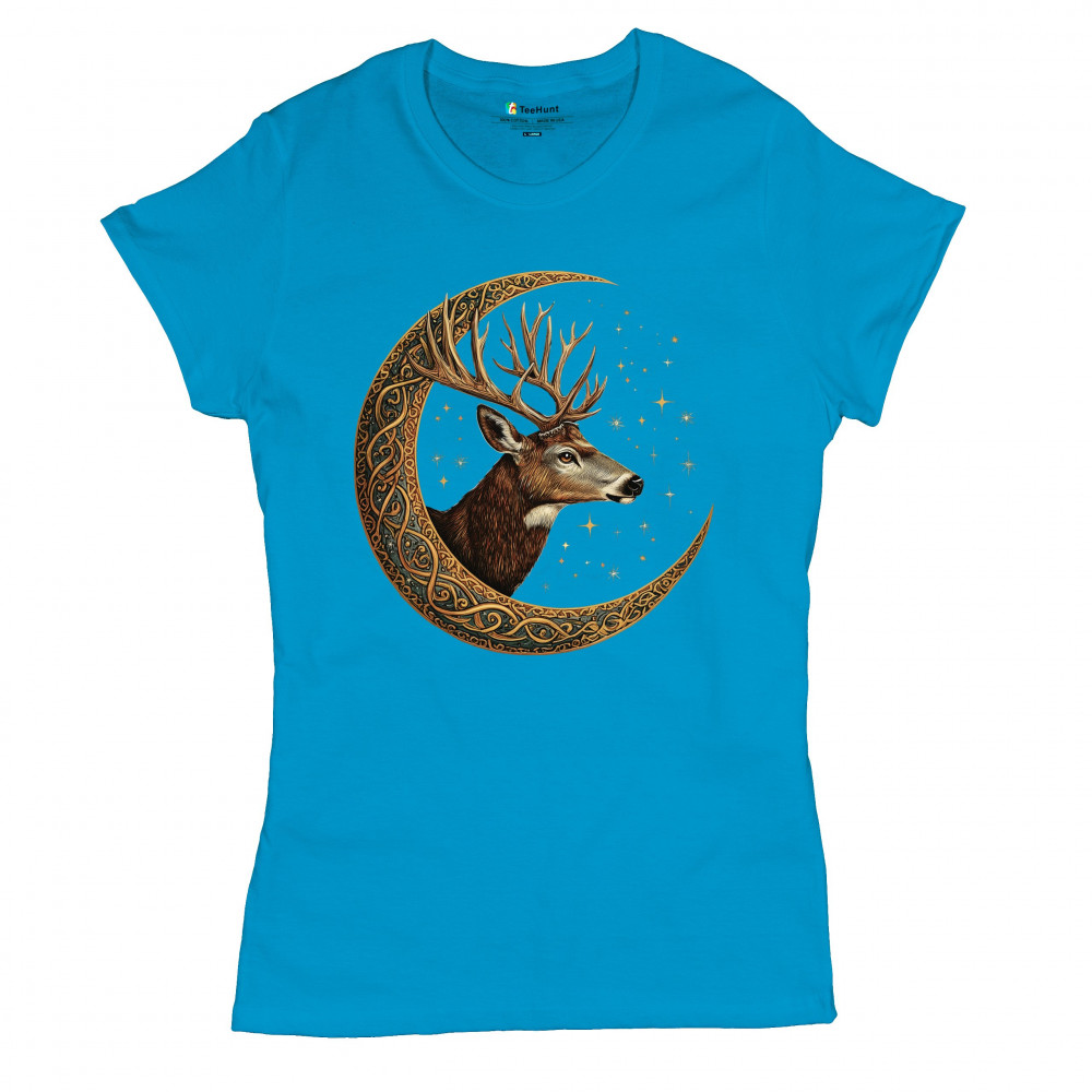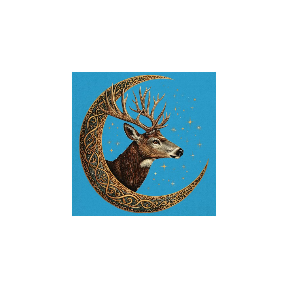 Majestic deer in Celtic moon with stars—symbol of protection, nature, and cosmic wisdom. A mystical gift for hunters, druids, and forest lovers.