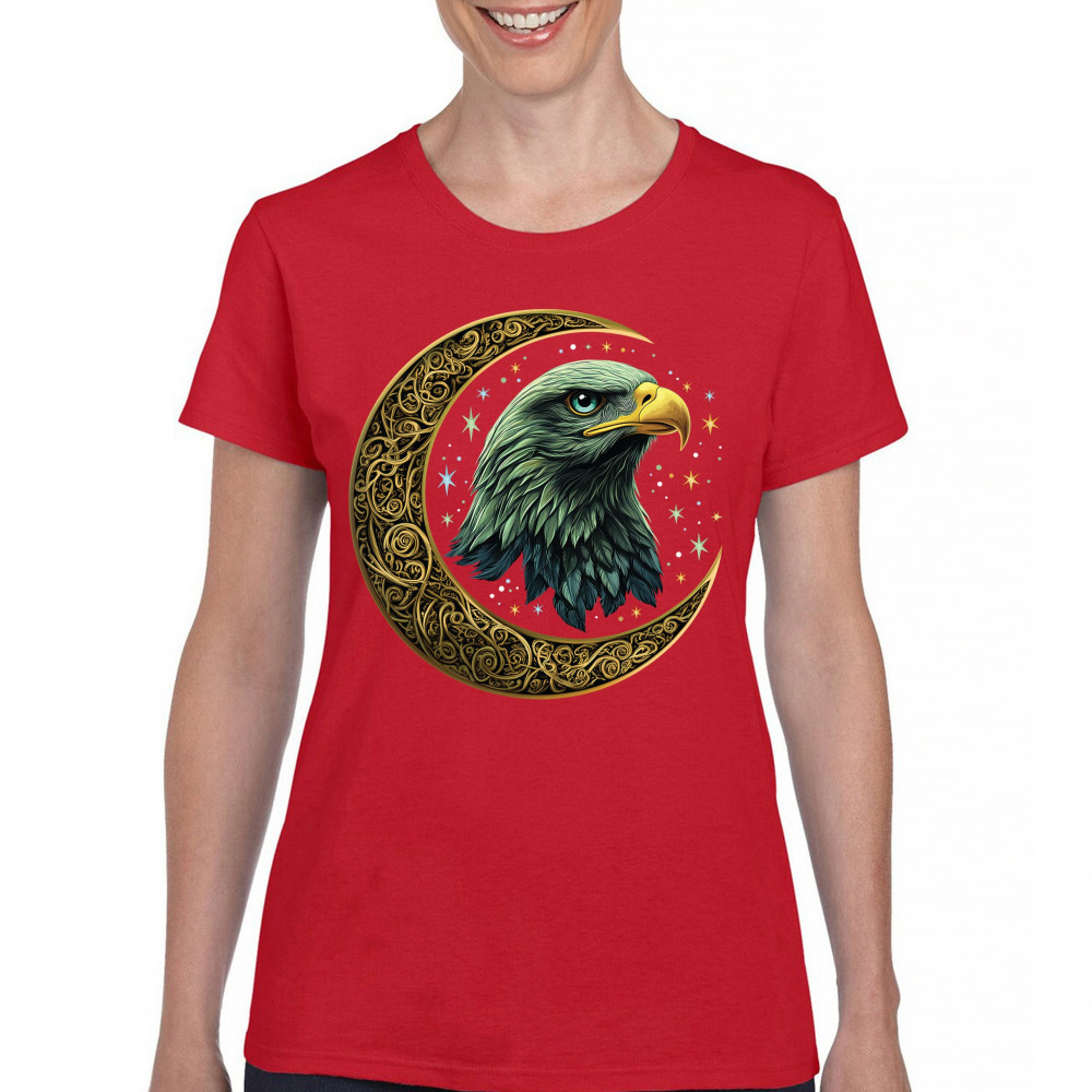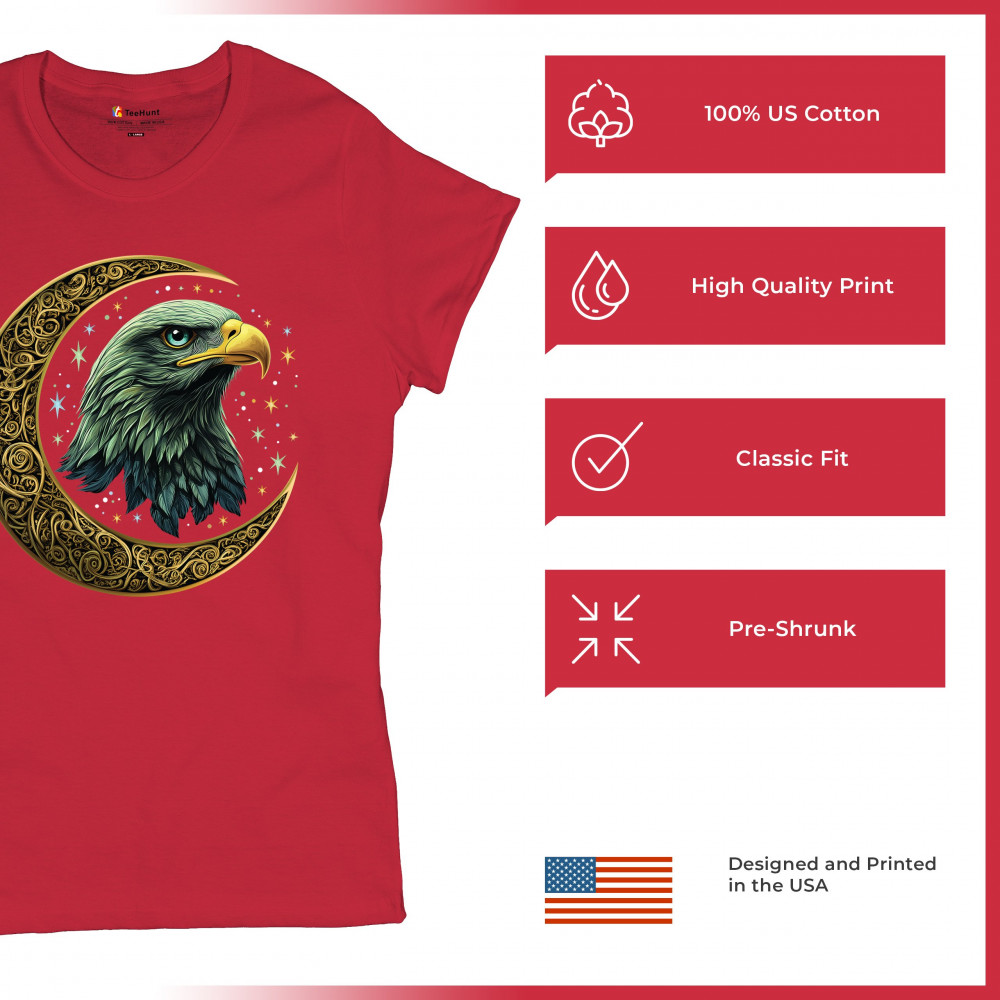 Majestic eagle in golden Celtic moon with stars—symbol of strength, vision, and freedom. Perfect for patriots, spiritual seekers, and nature lovers.