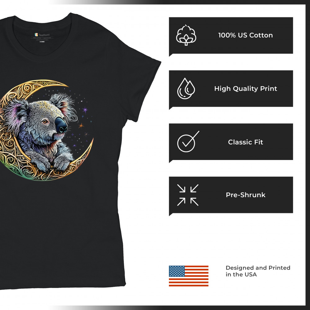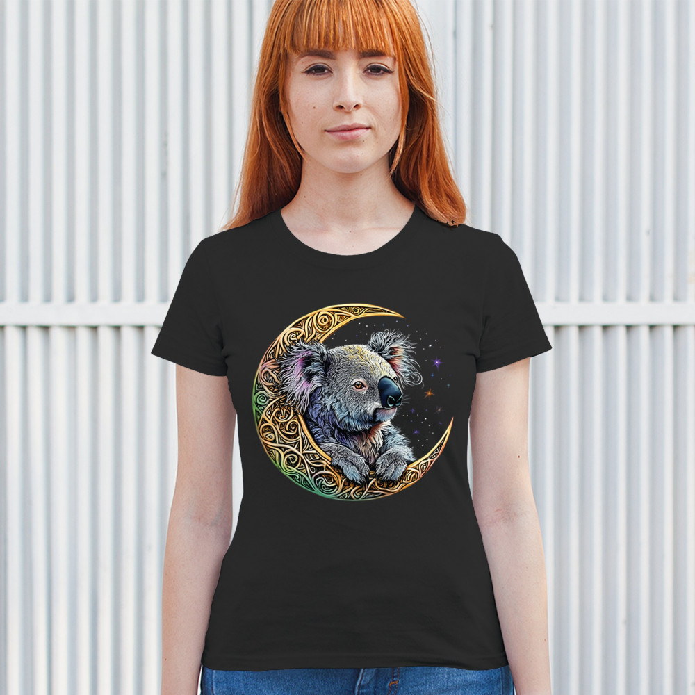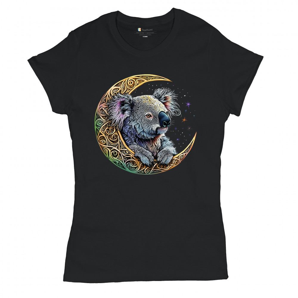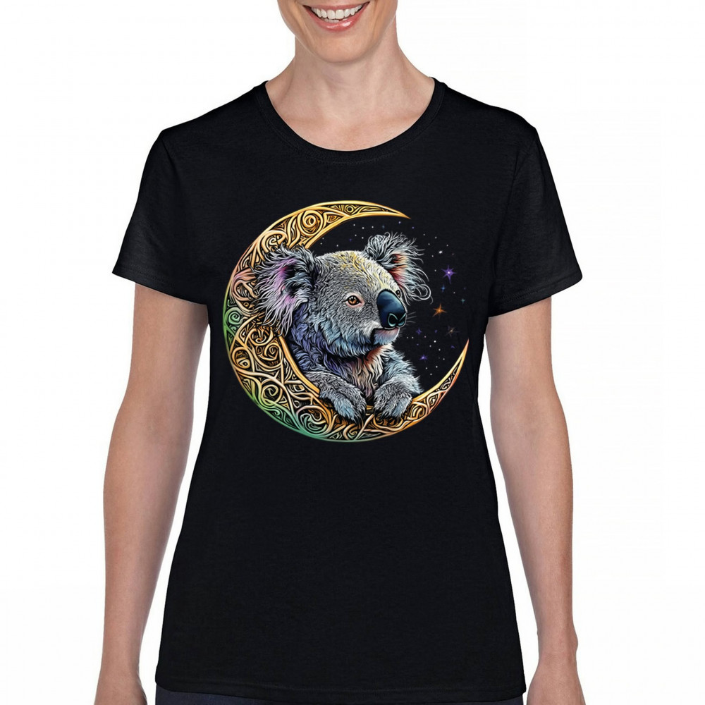 CELTIC MOON KOALA t-shirt spiritual lunar forest animal wildlife women's tee black