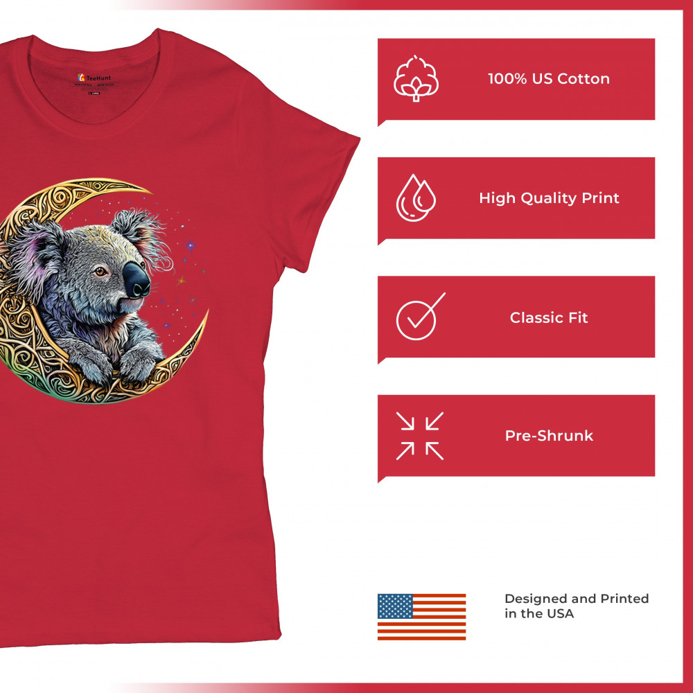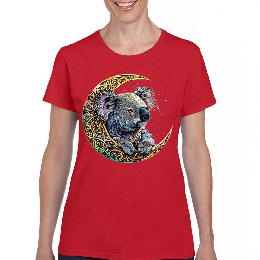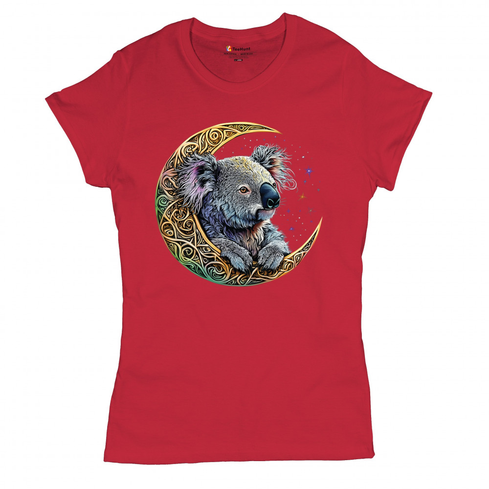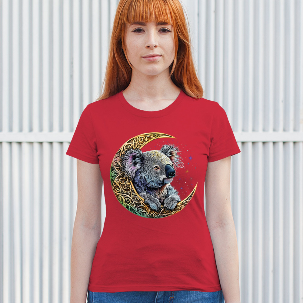 Koala resting in Celtic crescent moon with cosmic sky. A peaceful design for nature lovers, spiritual thinkers, and fantasy art fans.