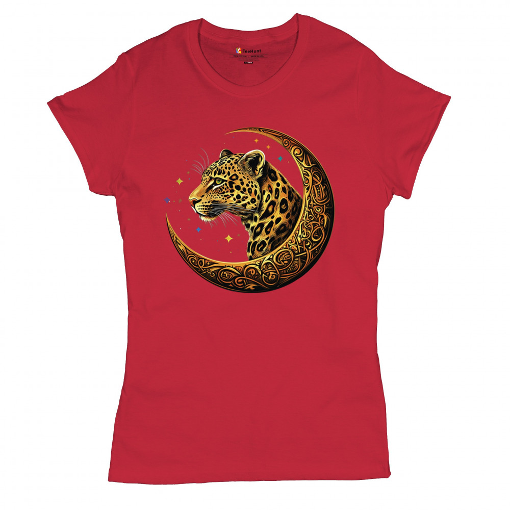 Unleash wild energy and spiritual symbolism with this bold leopard design set inside a golden Celtic crescent moon. A cosmic starry background amplifies its mystical vibe, symbolizing agility, independence, and awareness. Perfect for big cat lovers, jungle animal fans, and seekers of fantasy or tribal-inspired art.