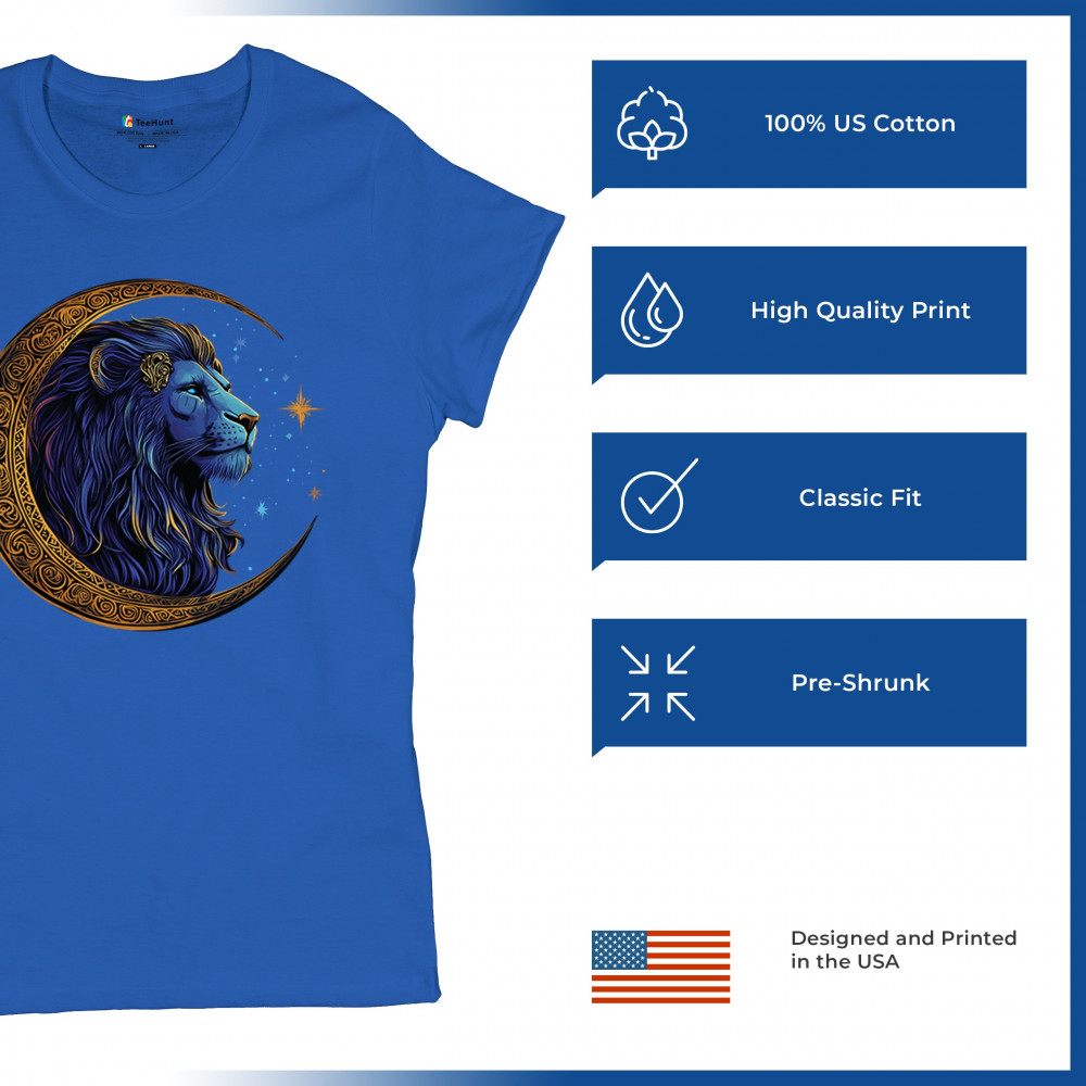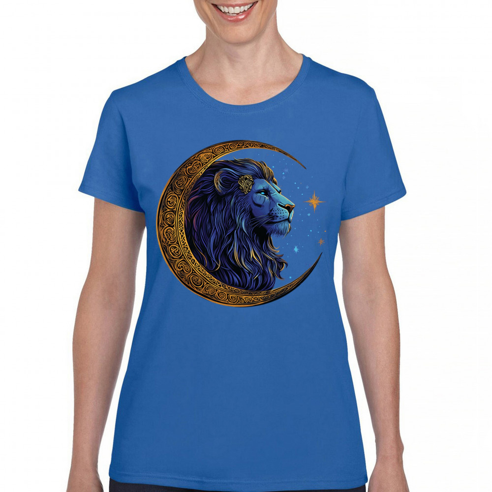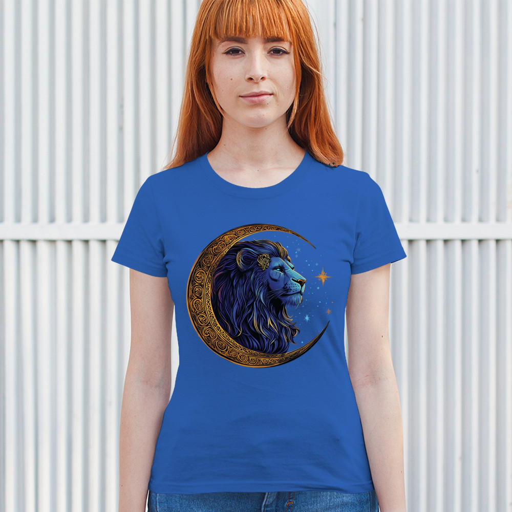 Majestic lion in Celtic crescent moon design—ideal for Leos, fantasy fans, and spiritual seekers drawn to strength and celestial symbolism.