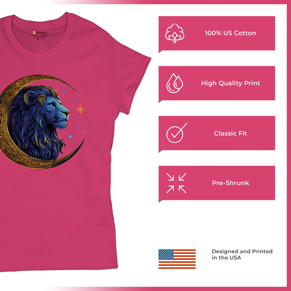 Majestic lion in Celtic crescent moon design—ideal for Leos, fantasy fans, and spiritual seekers drawn to strength and celestial symbolism.