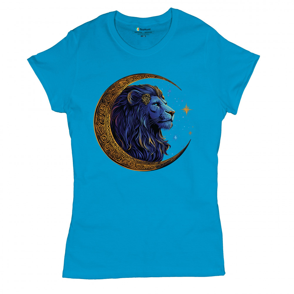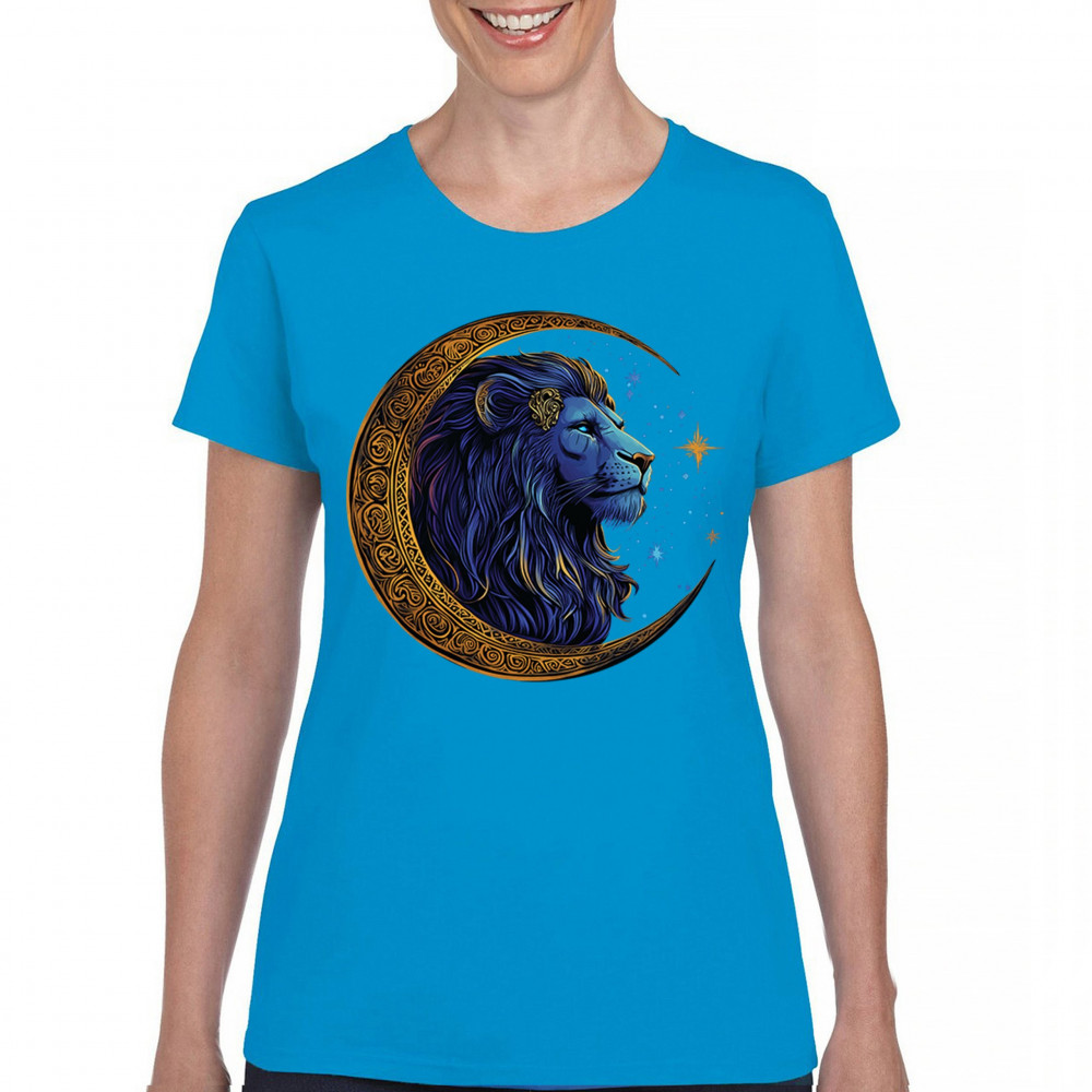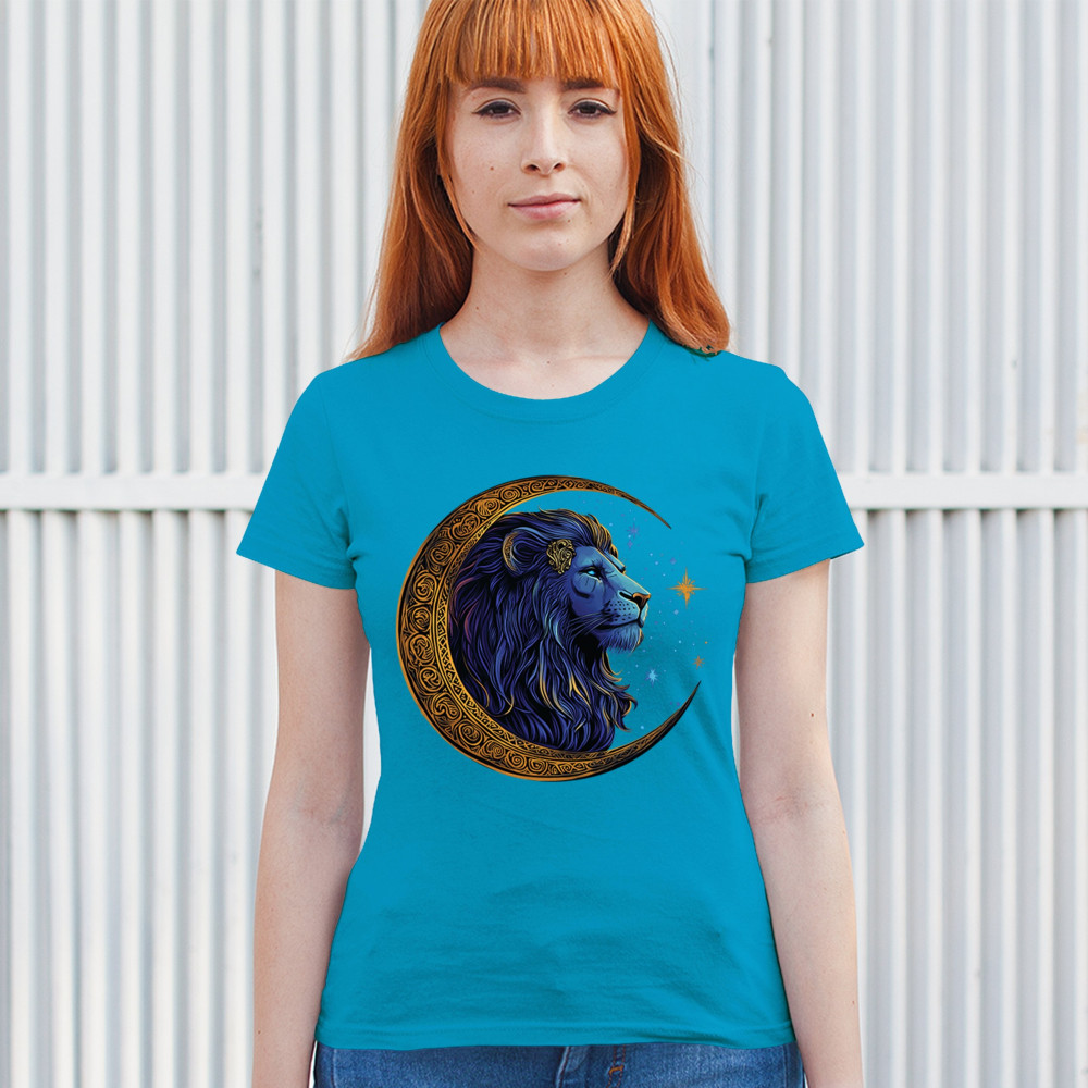 Majestic lion in Celtic crescent moon design—ideal for Leos, fantasy fans, and spiritual seekers drawn to strength and celestial symbolism.