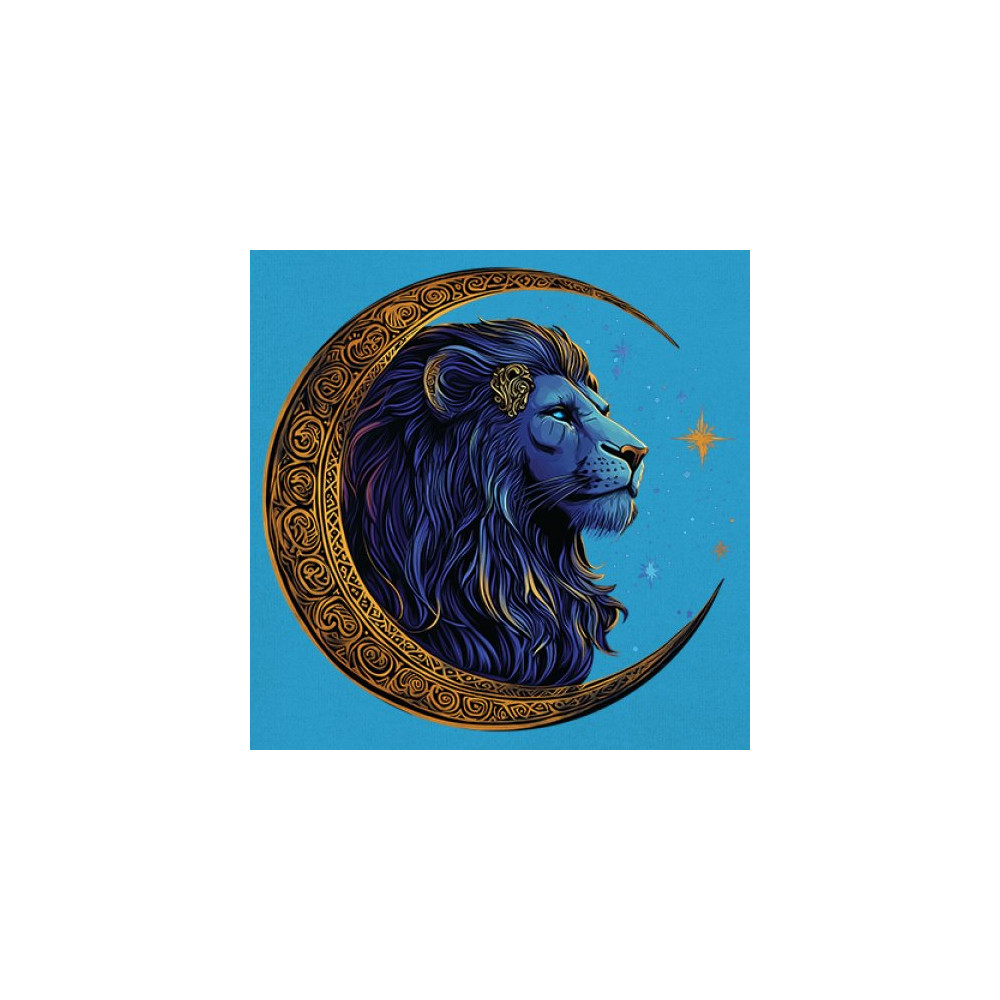 This celestial lion design features a majestic mane framed by a golden Celtic crescent moon, symbolizing leadership, courage, and wild spirit. Perfect for Leo zodiac signs, mystic seekers, and fantasy fans, this artwork blends tribal symbolism, cosmic energy, and regal power in one visually stunning tribute to inner strength.