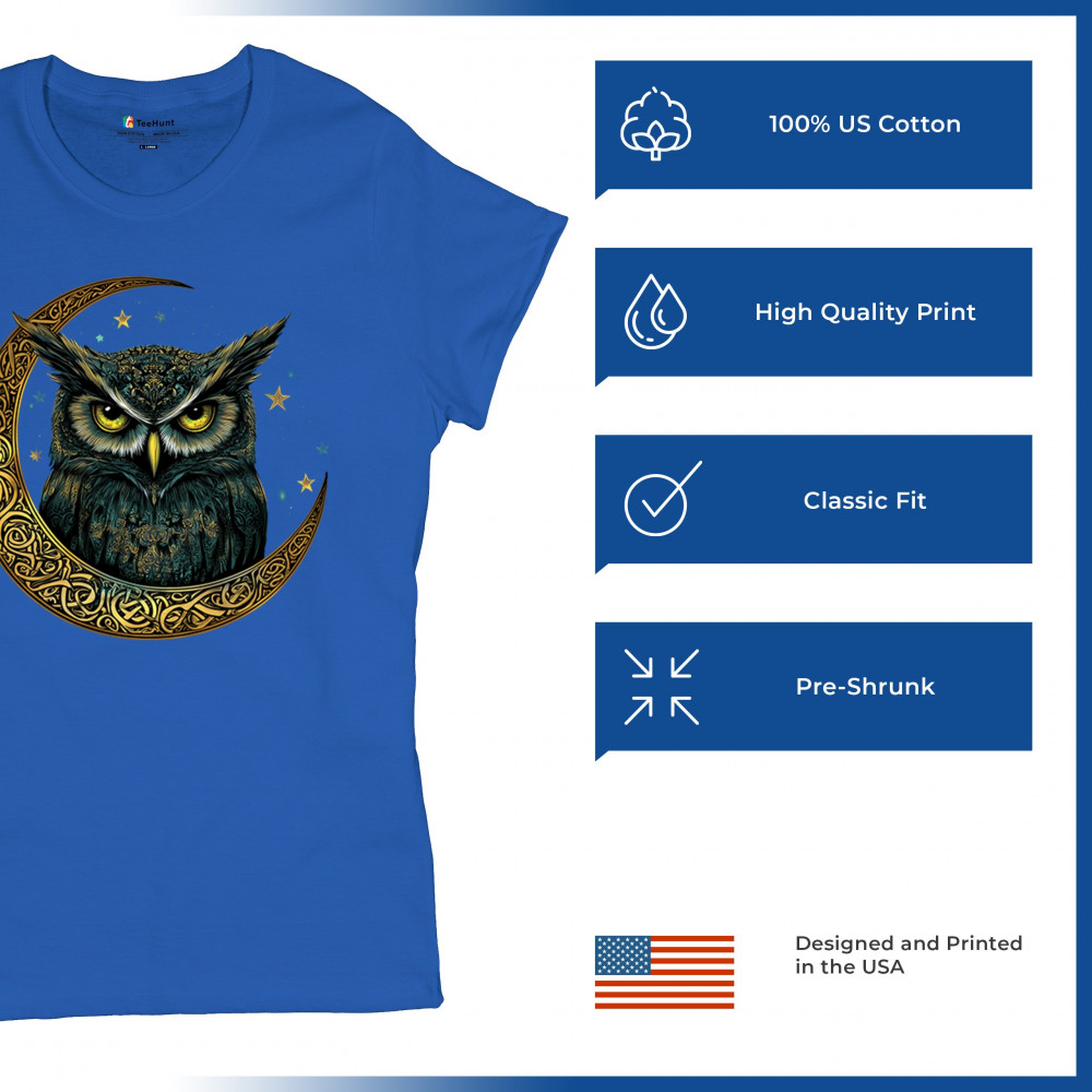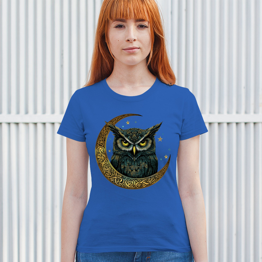Cosmic owl in Celtic crescent moon—symbol of wisdom, night mystery, and spirit. Perfect for mystics, owl lovers, and fantasy fans.
