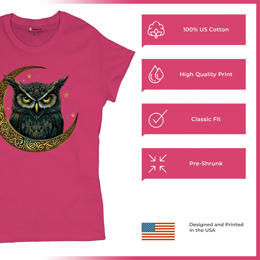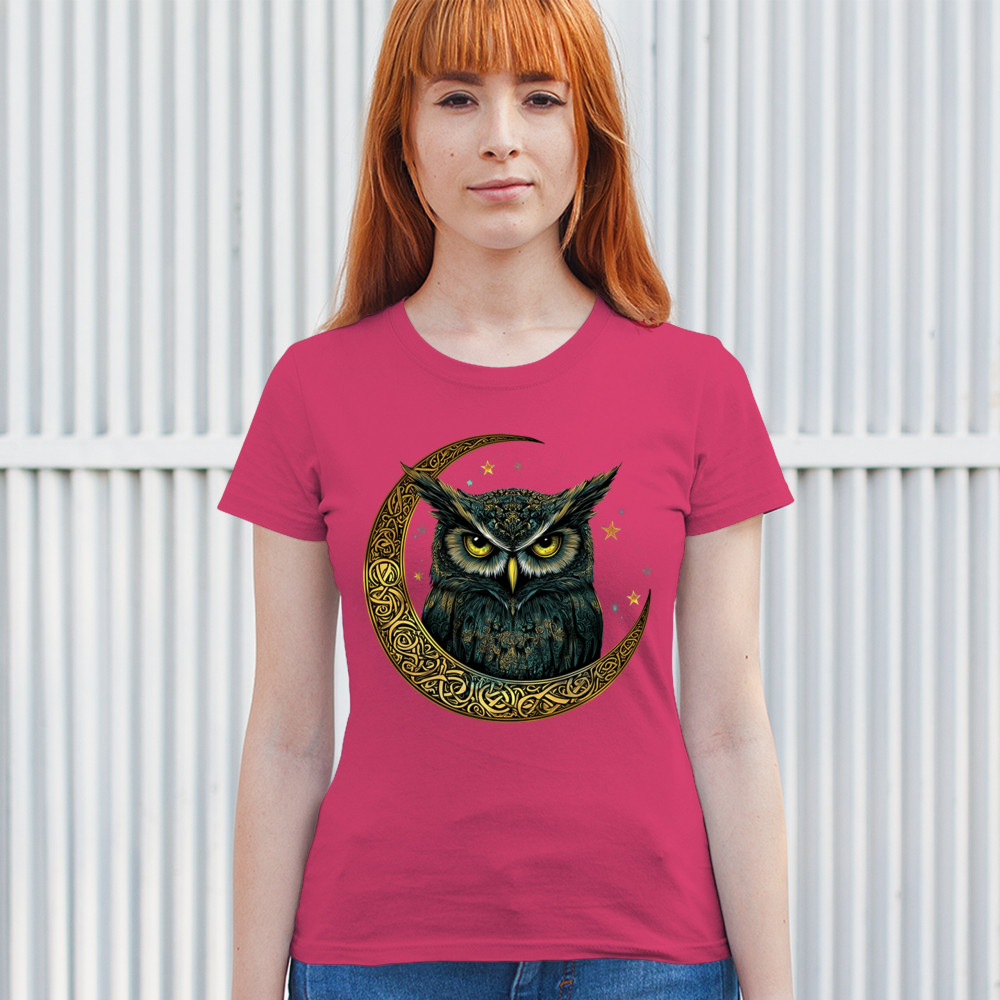 Cosmic owl in Celtic crescent moon—symbol of wisdom, night mystery, and spirit. Perfect for mystics, owl lovers, and fantasy fans.