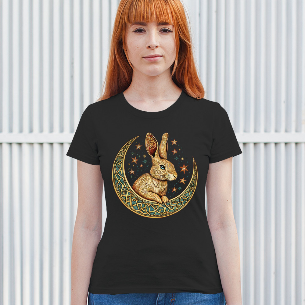 CELTIC MOON RABBIT t-shirt mystical bunny spiritual nordic nature women's tee black