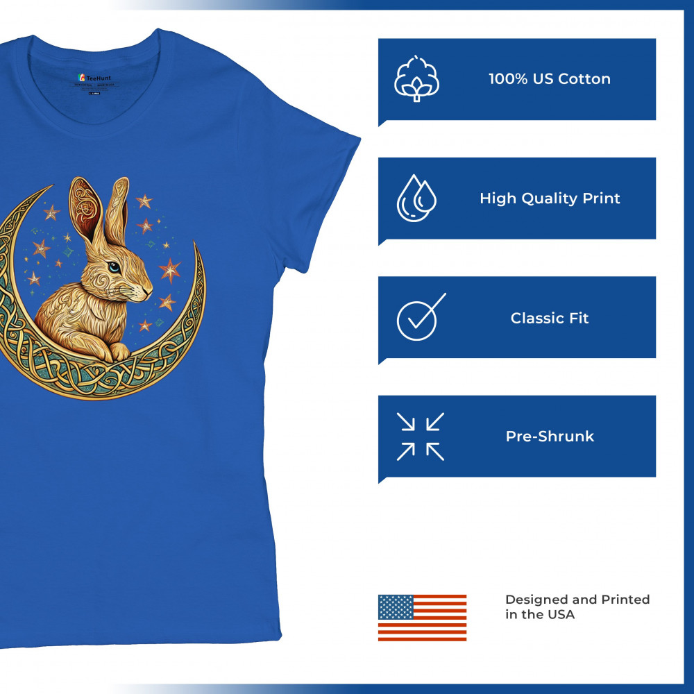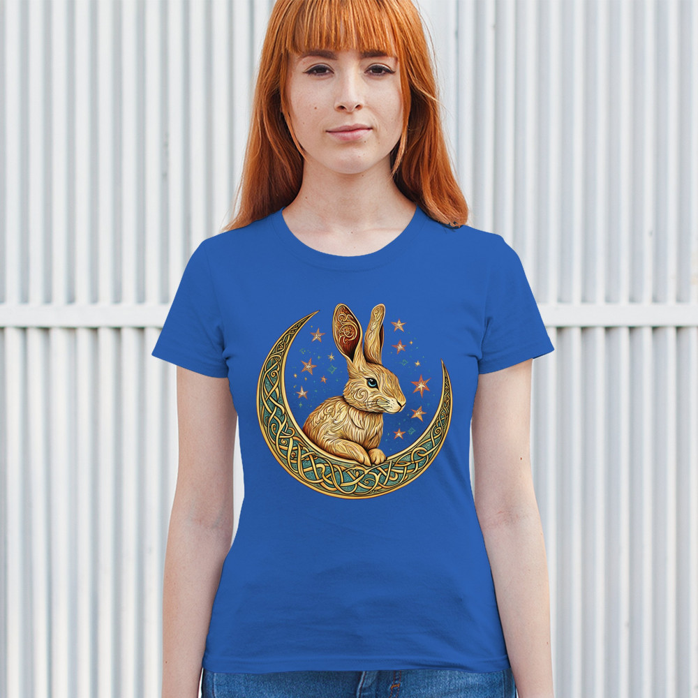 Mystical rabbit in Celtic moon—symbolizing intuition, rebirth, and spring energy. Ideal for fantasy lovers, mystics, and nature fans.
