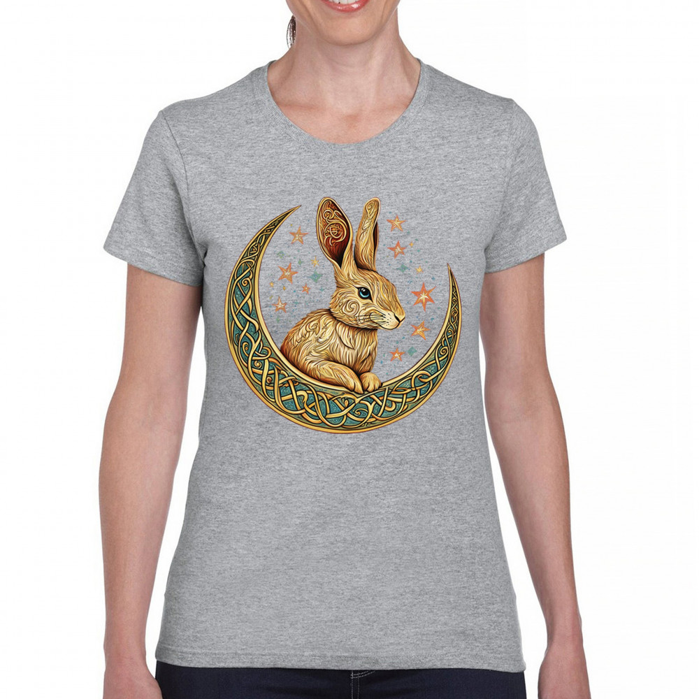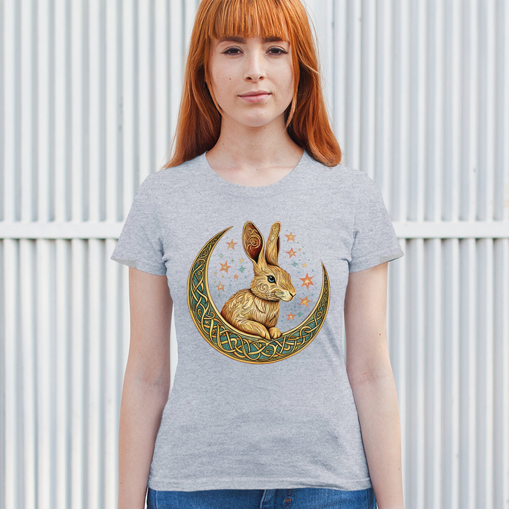 Mystical rabbit in Celtic moon—symbolizing intuition, rebirth, and spring energy. Ideal for fantasy lovers, mystics, and nature fans.