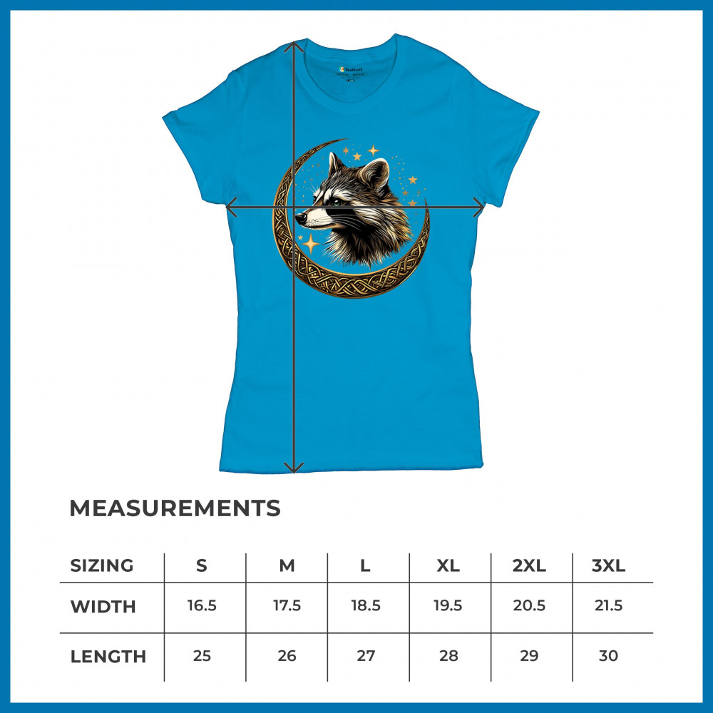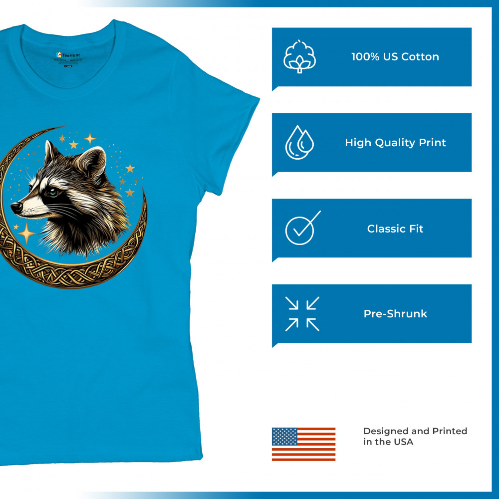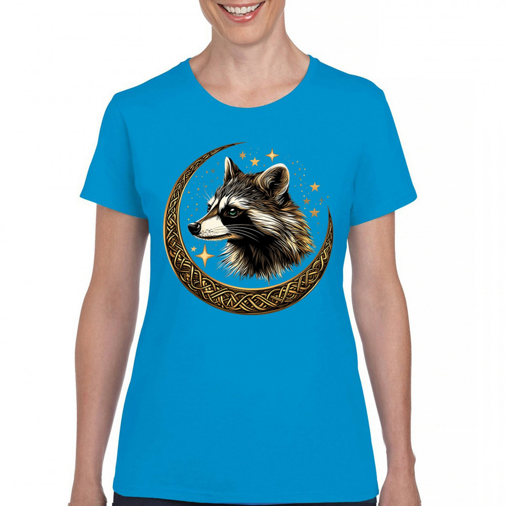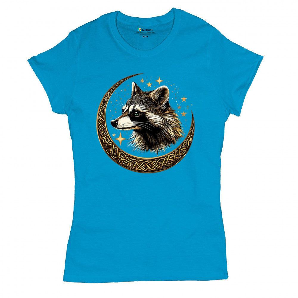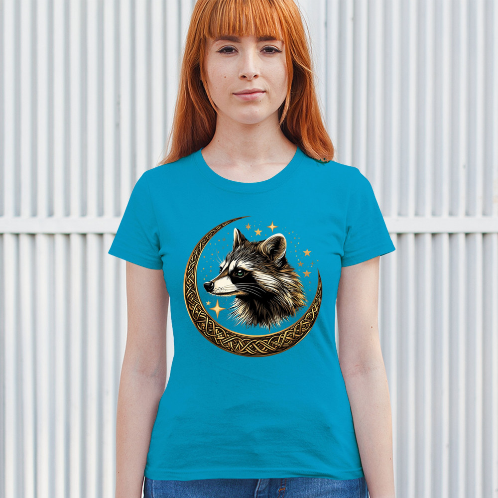 Cosmic raccoon design in Celtic moon. Symbol of adaptability, mystery, and spiritual intelligence. A perfect gift for wild and curious souls.