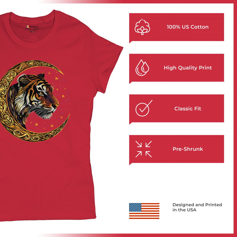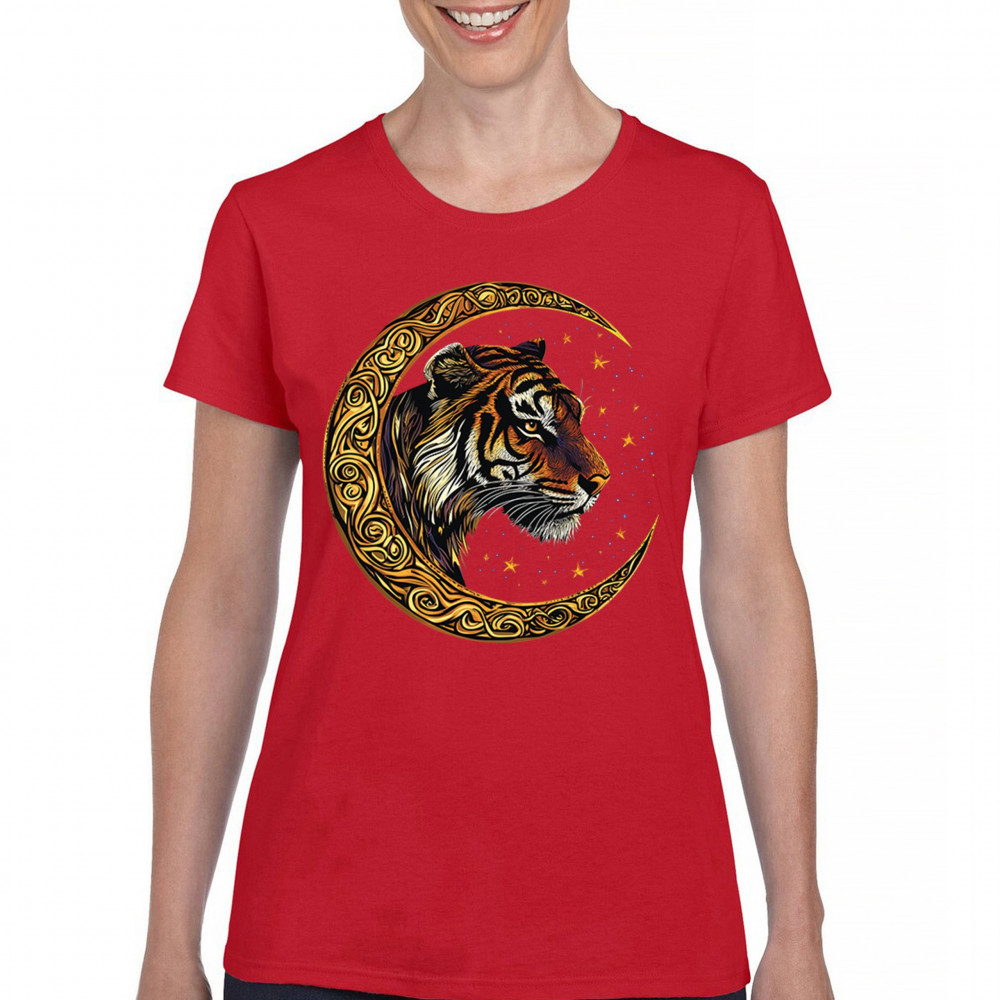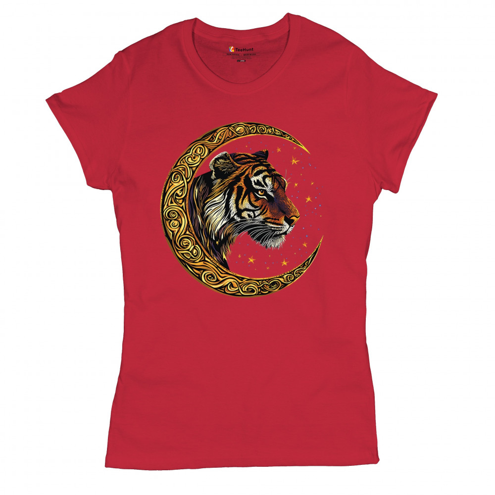 Bold tiger design in Celtic moon with cosmic sky. Symbol of strength, instinct, and jungle mysticism. Great for animal lovers and fantasy fans.