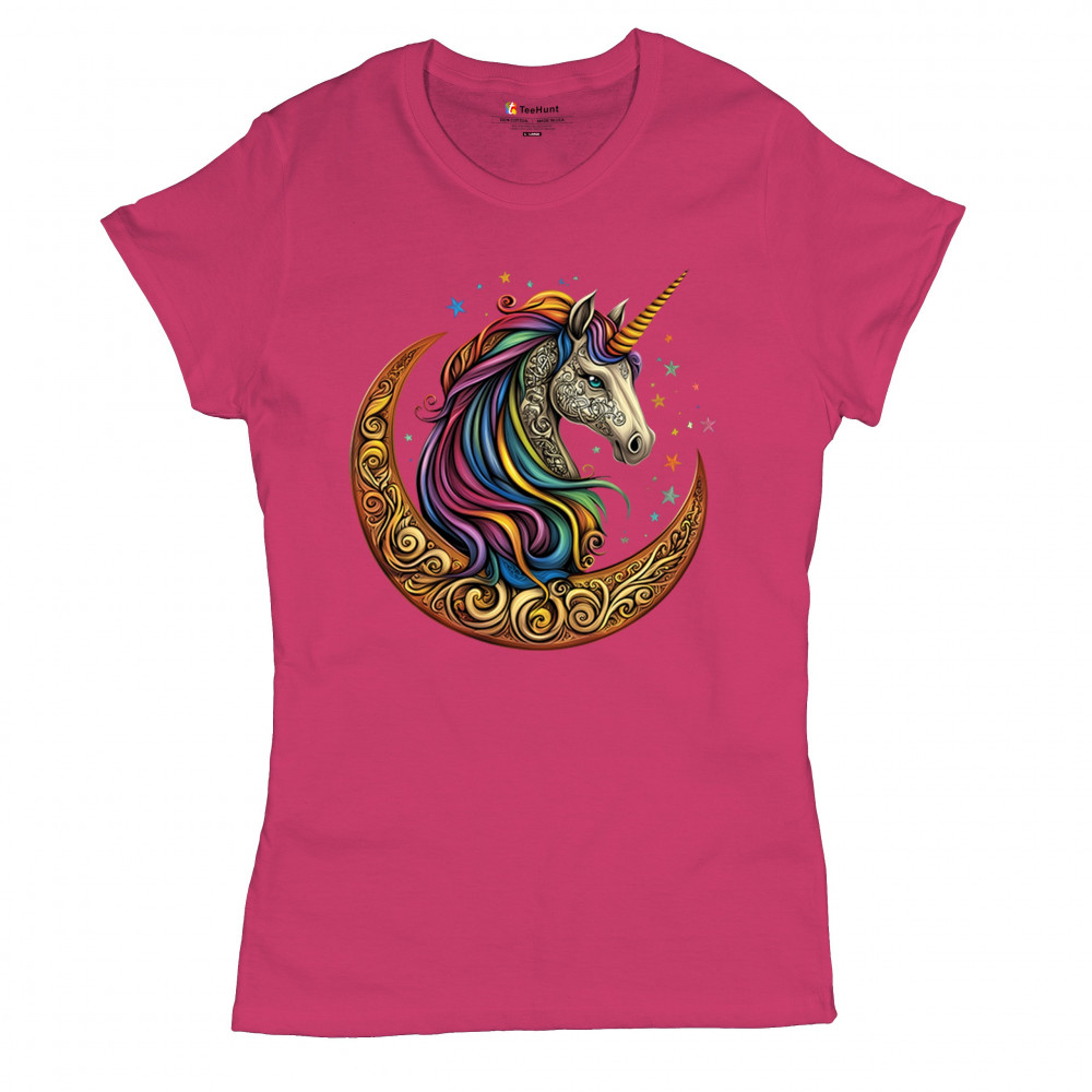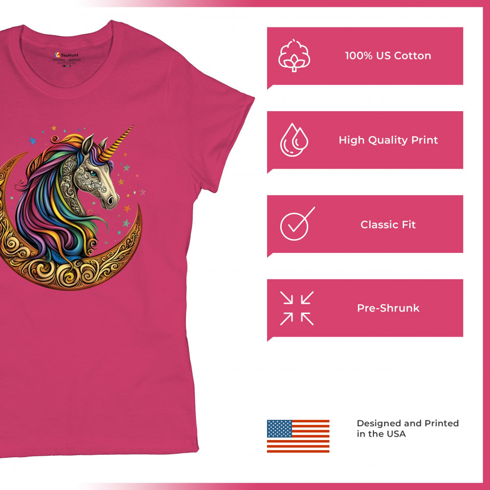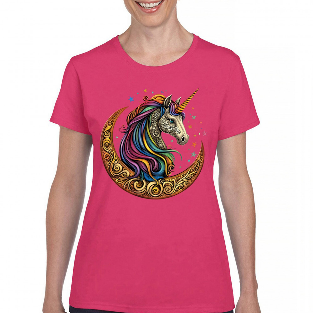 Rainbow-maned unicorn in golden Celtic moon design—perfect for fantasy lovers, dreamers, and unicorn fans who believe in magic and spirit.