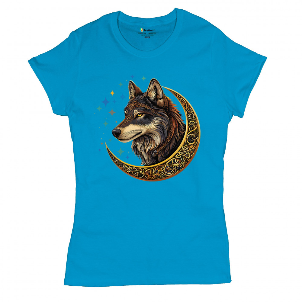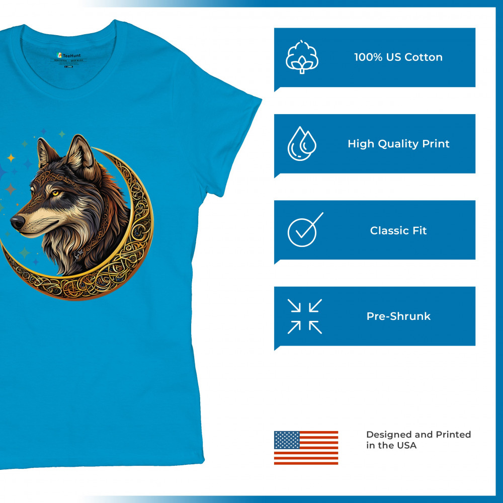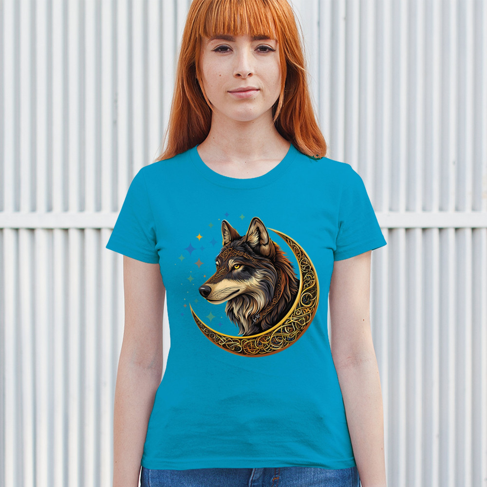 Celtic wolf design in a glowing crescent moon. Symbolizes loyalty, mysticism, and wild energy. Great for fantasy fans and spirit animal seekers.