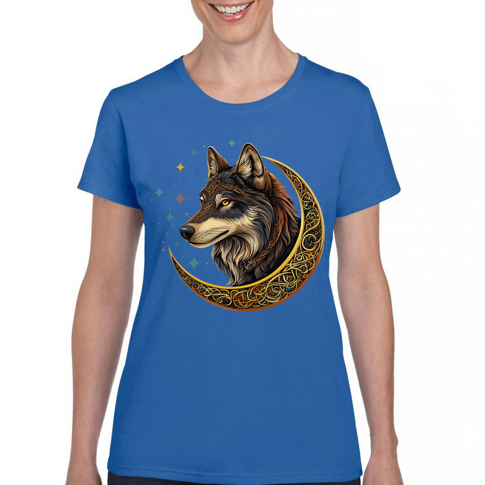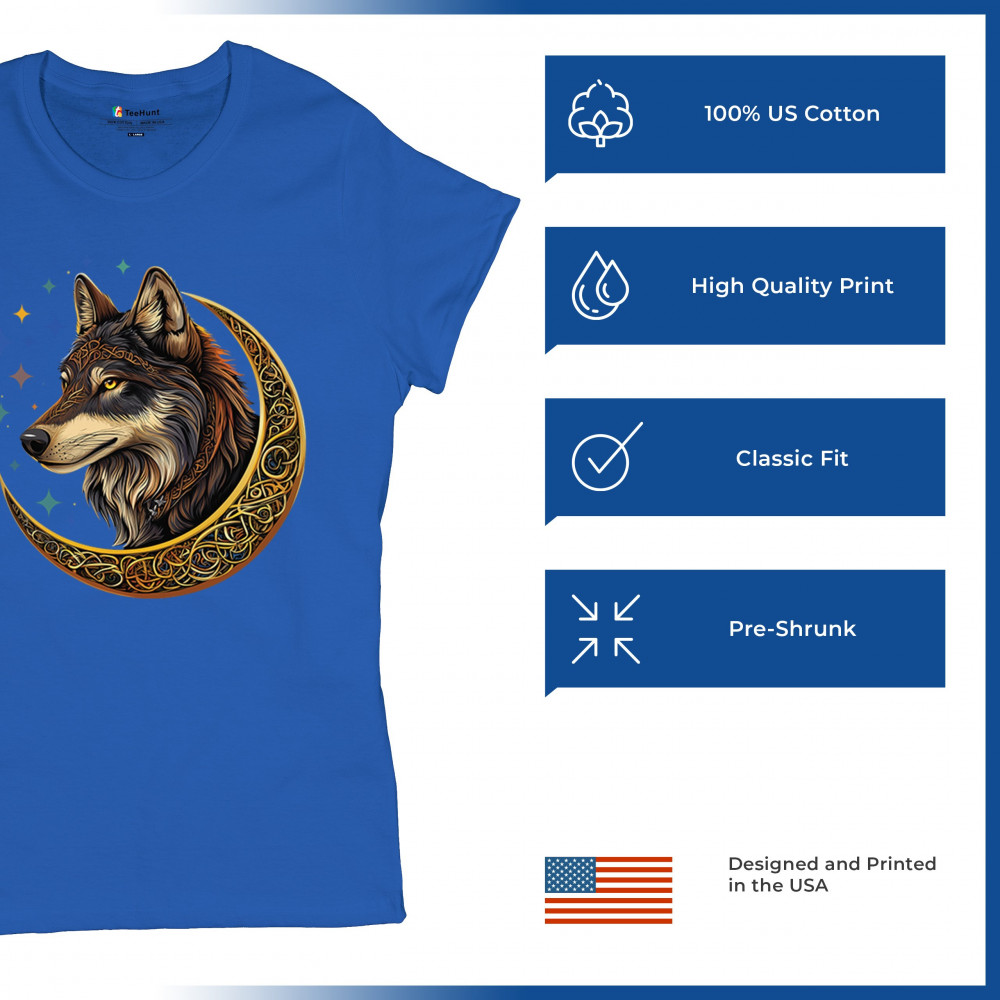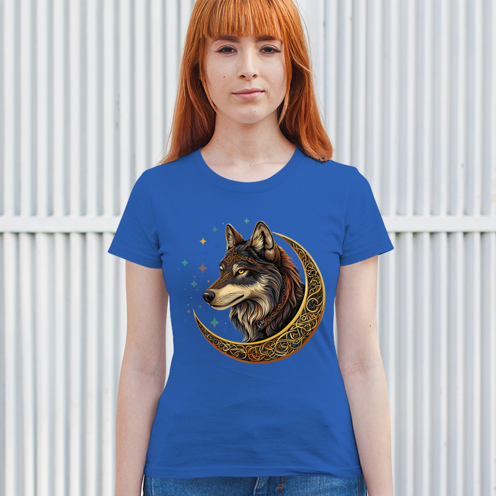Celtic wolf design in a glowing crescent moon. Symbolizes loyalty, mysticism, and wild energy. Great for fantasy fans and spirit animal seekers.