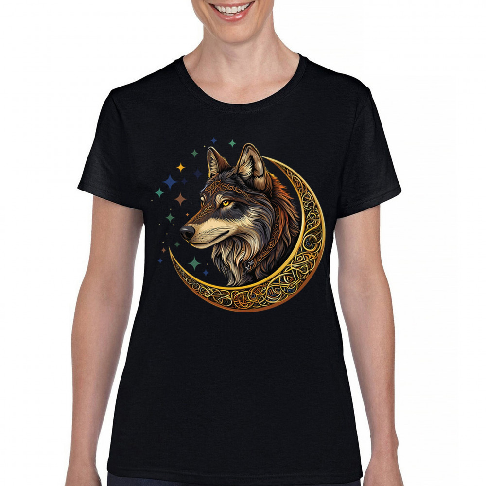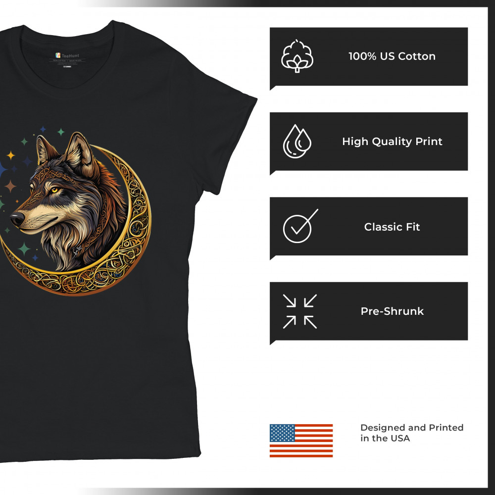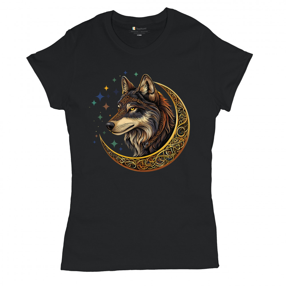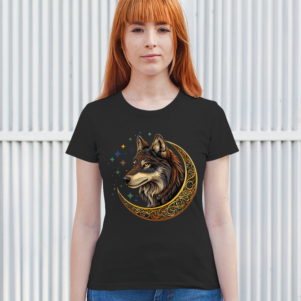 Celtic wolf design in a glowing crescent moon. Symbolizes loyalty, mysticism, and wild energy. Great for fantasy fans and spirit animal seekers.