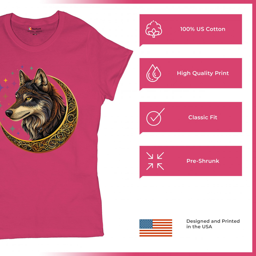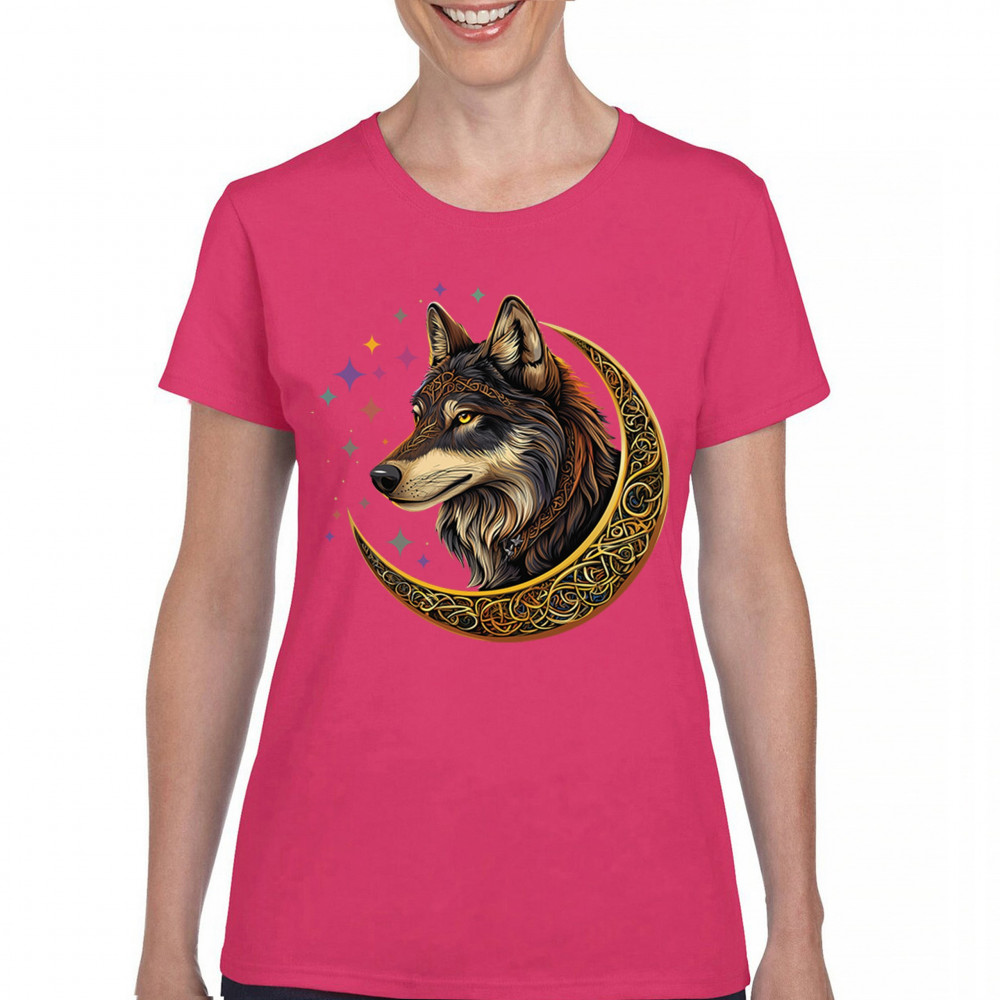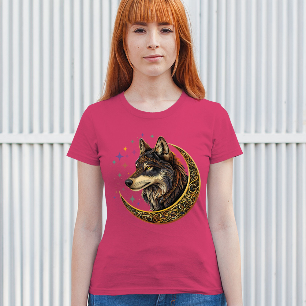 Celtic wolf design in a glowing crescent moon. Symbolizes loyalty, mysticism, and wild energy. Great for fantasy fans and spirit animal seekers.