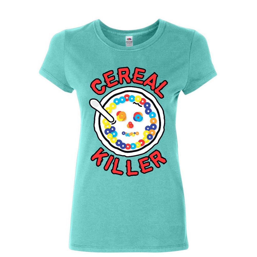 CEREAL KILLER women's t-shirt funny breakfast morning meal serial killer shirt light blue
