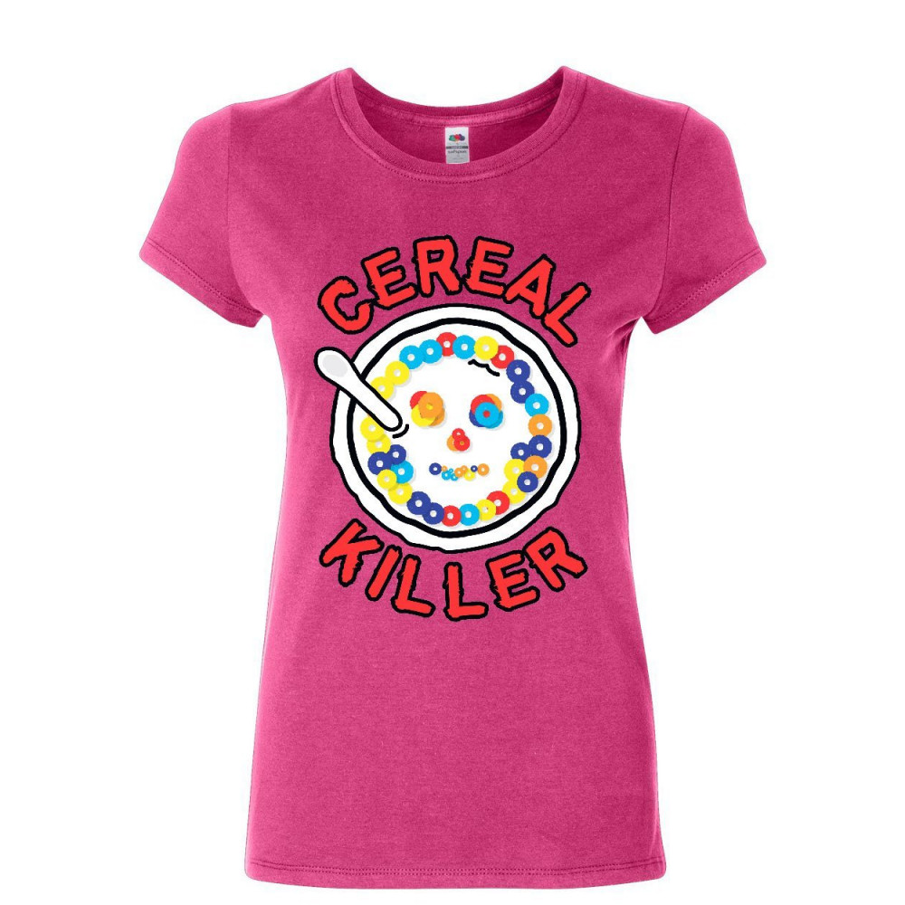 CEREAL KILLER women's t-shirt funny breakfast morning meal serial killer shirt hot pink